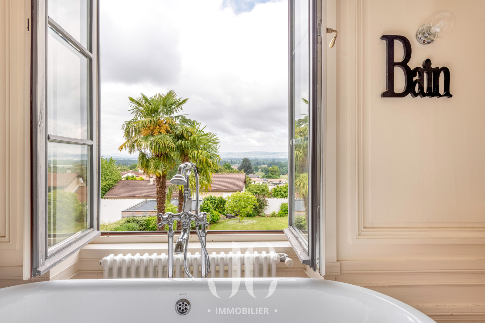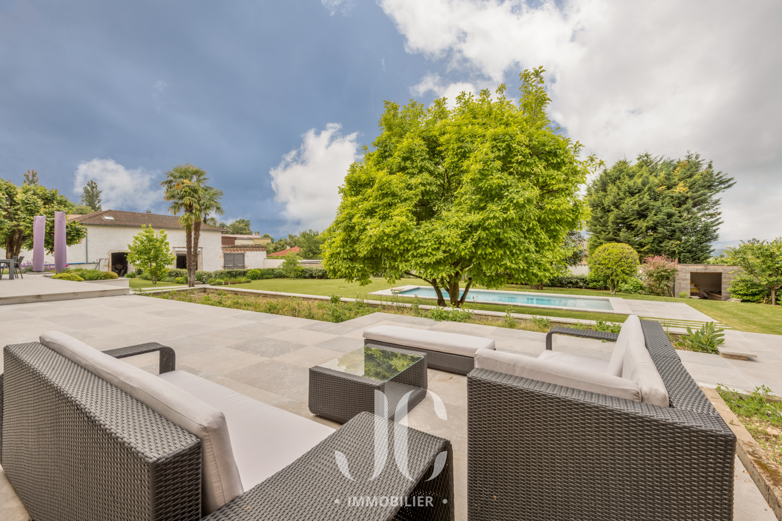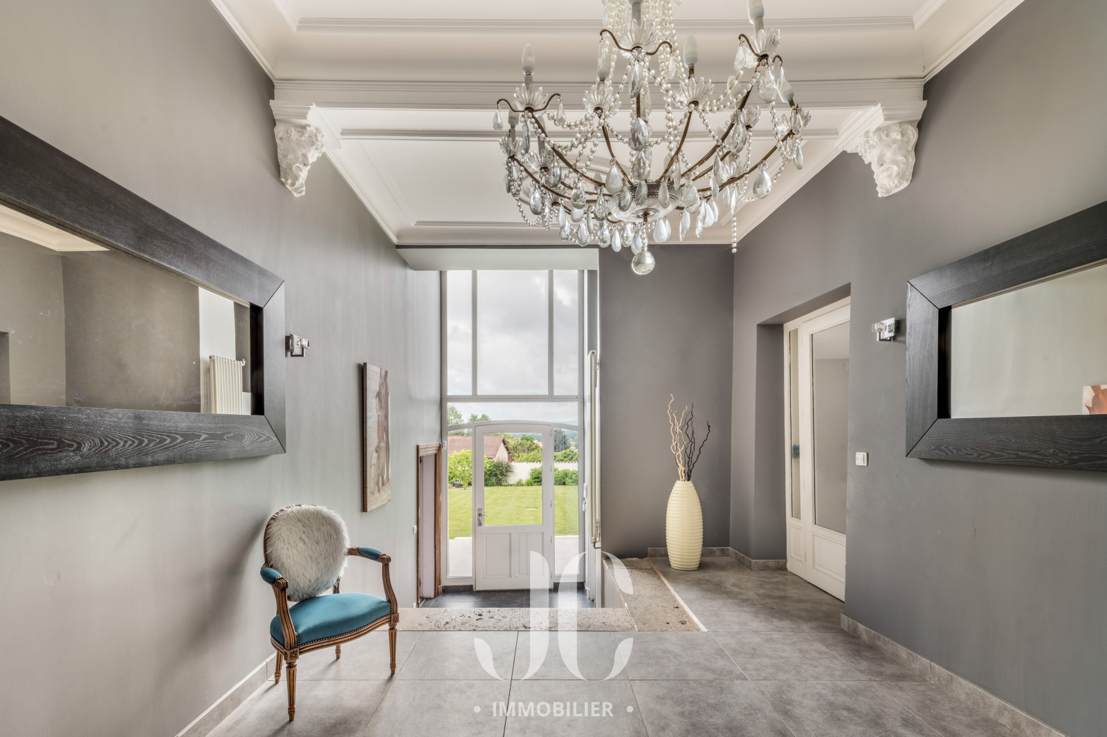 C'est à Reyrieux que nous vous faisons découvrir cette magnifique propriété de 330m² sur un terrain de 2600m² avec piscine. Le charme et l'élégance des lieux vous feront oublier instantanément l'effervescence de la vie citadine. Dès l'entrée, vous serez absorbés par la vue panoramique et la séduction vous accompagnera tout au long de la découverte des lieux. Cette partie est composée en rez de chaussée d'une vaste cuisine avec espace dînatoire et cheminée, un magnifique salon de réception, une salle de jeux, une salle de sport et une splendide orangerie équipée d'un jacuzzi. Une vaste buanderie complète ce niveau et donne accès à une magnifique et spacieuse cave voûtée en pierre. En étage, ce sont 4 chambres toutes équipées de salles d'eau qui en font un espace nuit très spacieux. Une pièce supplémentaire pouvant être aménagée. Le magnifique terrain avec piscine 11x4 continuera de vous transporter dans un réel sentiment de bien-être, et profite de spacieuses dépendances avec garage, atelier. N'attendez plus pour découvrir ce lieu unique !
