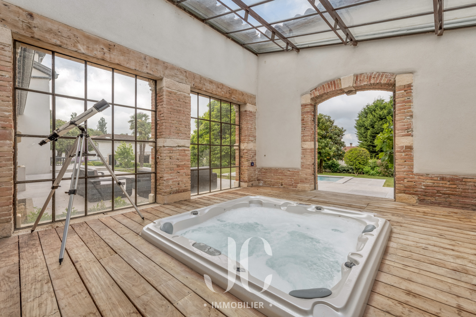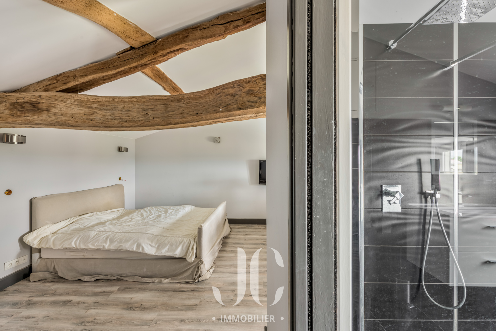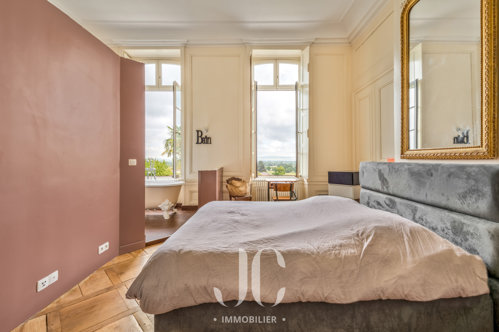 C'est à Reyrieux que nous vous faisons découvrir cette magnifique propriété de 330m² sur un terrain de 2600m² avec piscine. Le charme et l'élégance des lieux vous feront oublier instantanément l'effervescence de la vie citadine. Dès l'entrée, vous serez absorbés par la vue panoramique et la séduction vous accompagnera tout au long de la découverte des lieux. Cette partie est composée en rez de chaussée d'une vaste cuisine avec espace dînatoire et cheminée, un magnifique salon de réception, une salle de jeux, une salle de sport et une splendide orangerie équipée d'un jacuzzi. Une vaste buanderie complète ce niveau et donne accès à une magnifique et spacieuse cave voûtée en pierre. En étage, ce sont 4 chambres toutes équipées de salles d'eau qui en font un espace nuit très spacieux. Une pièce supplémentaire pouvant être aménagée. Le magnifique terrain avec piscine 11x4 continuera de vous transporter dans un réel sentiment de bien-être, et profite de spacieuses dépendances avec garage, atelier. N'attendez plus pour découvrir ce lieu unique !