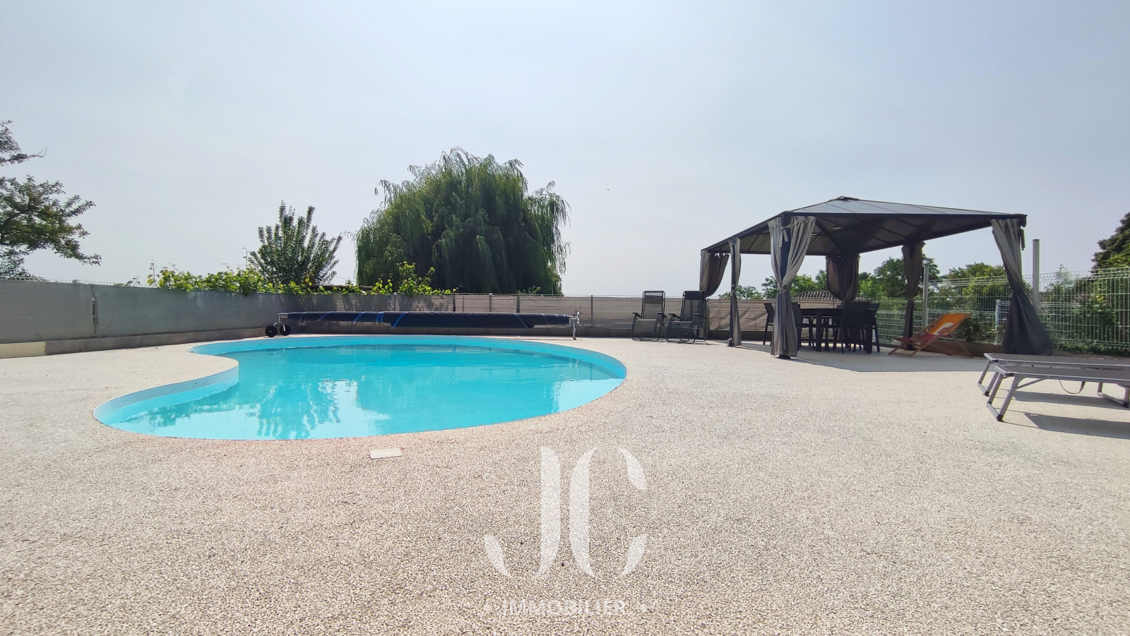 La parcelle de 2525m² ne vous laissera pas indifférent avec un beau jardin arboré, deux terrasses et une piscine sécurisée; et véritable privillège vous apprécierez la superbe vue sur les chaines de montagnes.