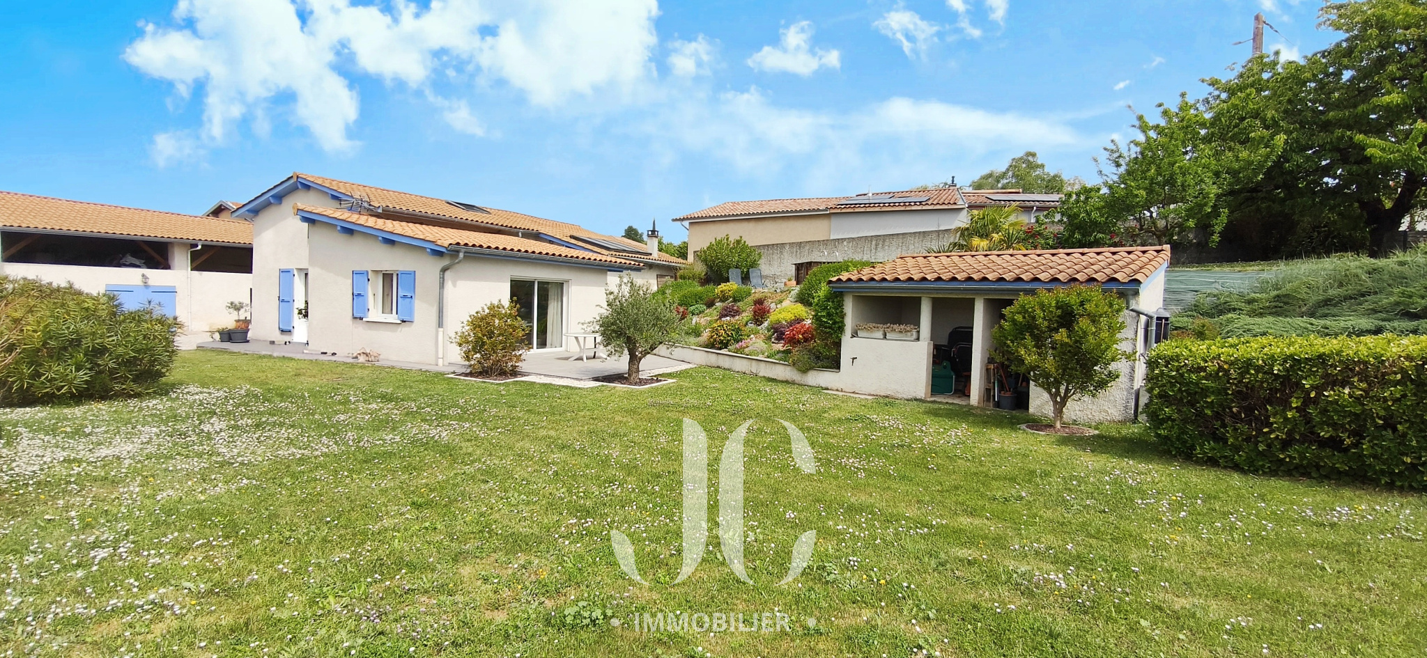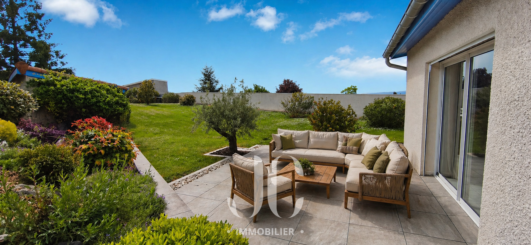 Le grand jardin est très agréable, la partie haute vous offre une belle vue sur le Parc du Pilat, il saura répondre à toutes vos envies de projet extérieur, il vous promet de beaux moments en famille et entre amis. Une piscine semi-enterré est présente et le terrain peut accueillir tout autre projet piscine différent.