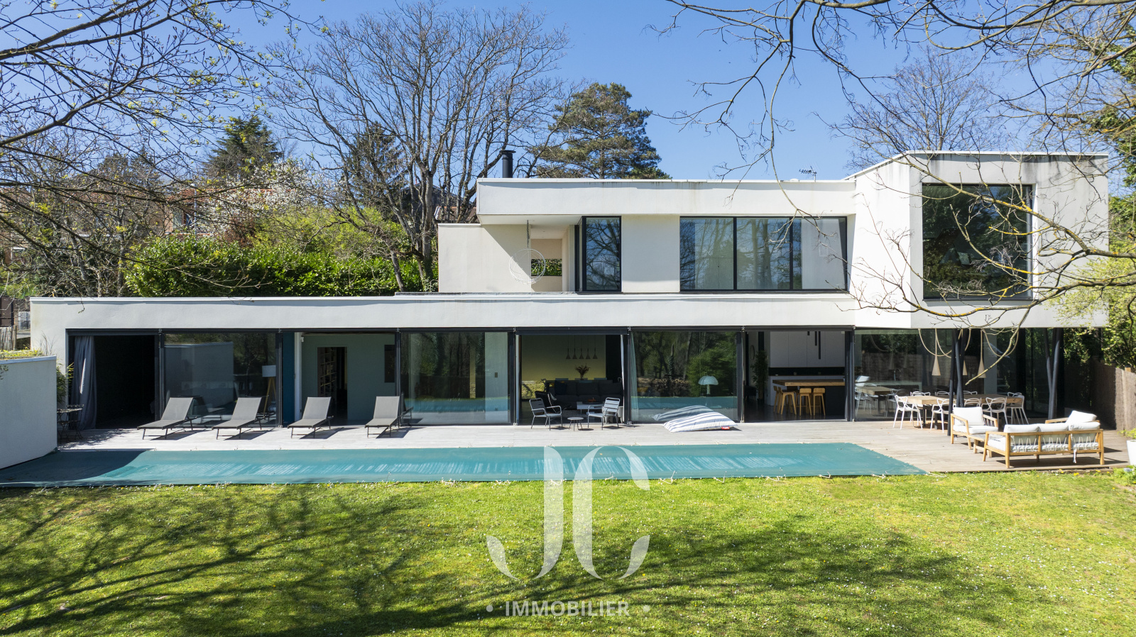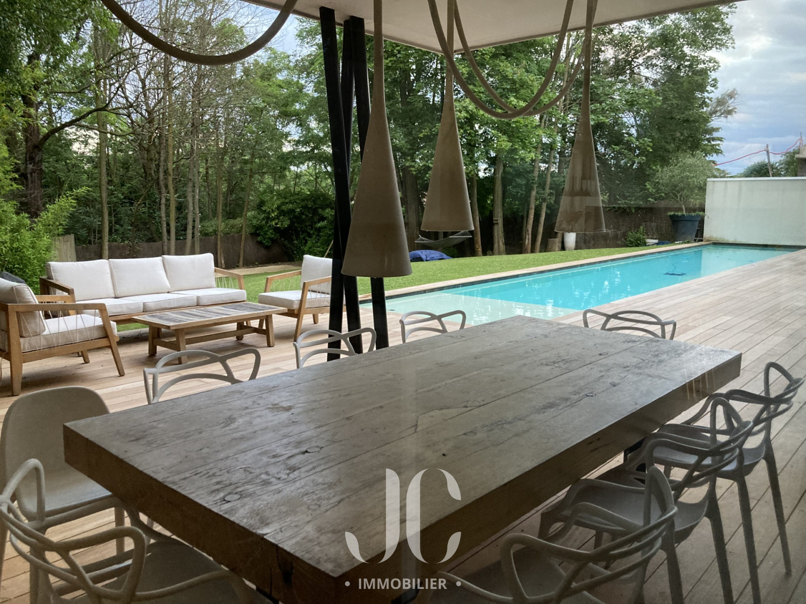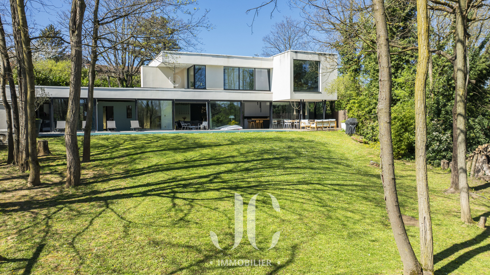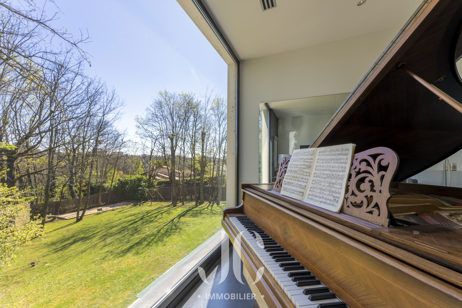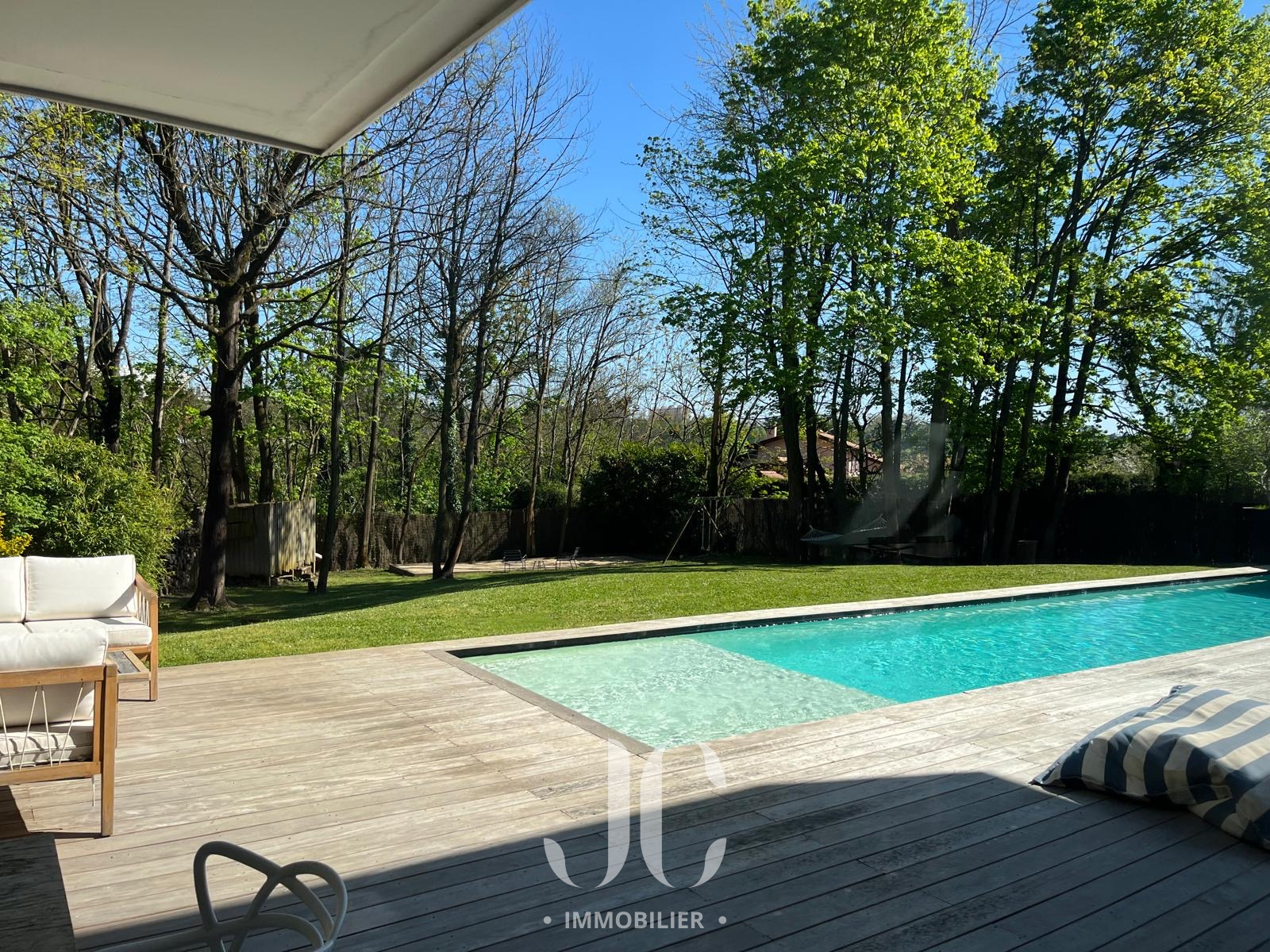 A la lisière des Monts d'Or et de la commune très prisée de St Cyr, c'est nichée dans un cocon de verdure que cette maison contemporaine de 260m² vous ouvre ses portes. Dès l'entrée, elle saura vous charmer par les volumes et la luminosité de sa pièce de réception permettant de profiter en toute quiétude du jardin de 1160m² magnifiquement arboré et d'une terrasse hébergeant une magnifique piscine de 18 x 3. Les larges baies vitrées sur la totalité de la façade vous confèrent un esprit dedans/dehors unique. A ce niveau de plain pied, vous profiterez d'une cuisine avec espace dinatoire complété par un cellier/buanderie, d'un salon de réception avec cheminée. Vous découvrirez ensuite toujours de plain pied, une Suite Parentale avec salle de bains et dressing, un bureau, un salon TV pouvant faire office de chambre. A l'étage, vous serez accueillis par un espace enfants, musique, salle de sport (ou chambre supplémentaire) à la baie vitrée incroyable permettant de s'adonner à ses activités en lien direct avec la nature. Deux belles chambres (possibilité 3) et une salle d'eau complètent cet espace nuit. En extérieur, le jardin est aménagée avec un terrain de pétanque laissant envisager de beaux moments de partage. Le stationnement est assuré par un car port de 3 places. N'hésitez pas à nous contacter et découvrons ensemble ce lieu de vie unique.