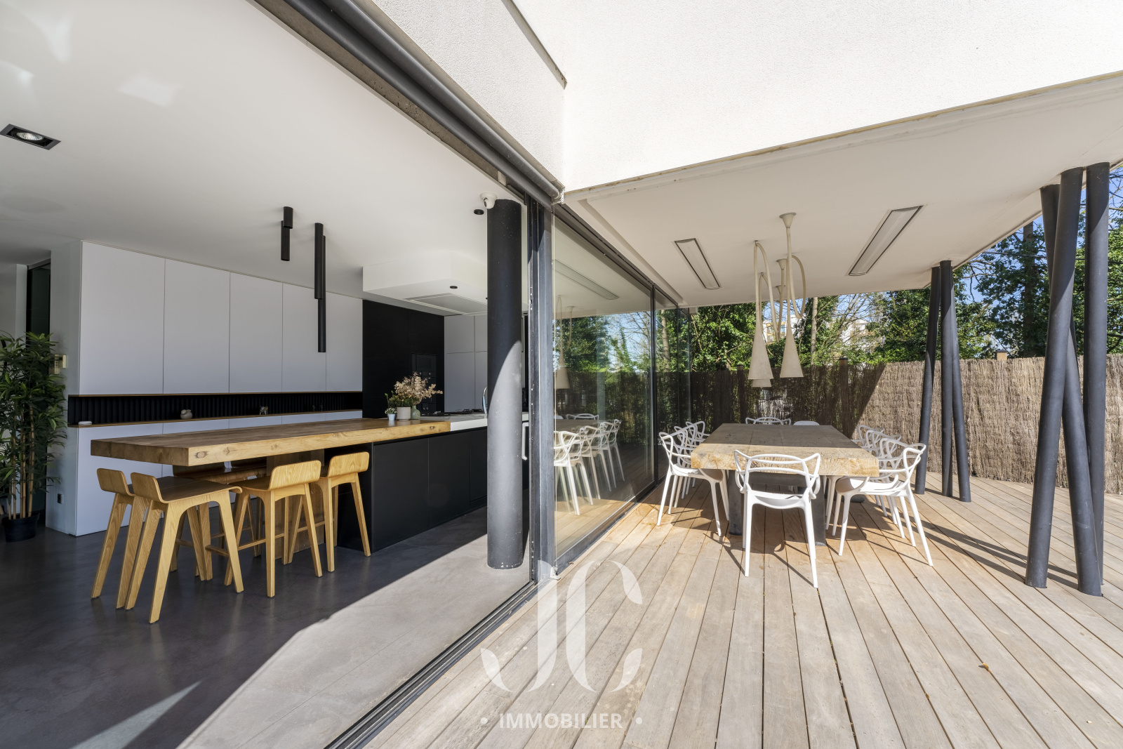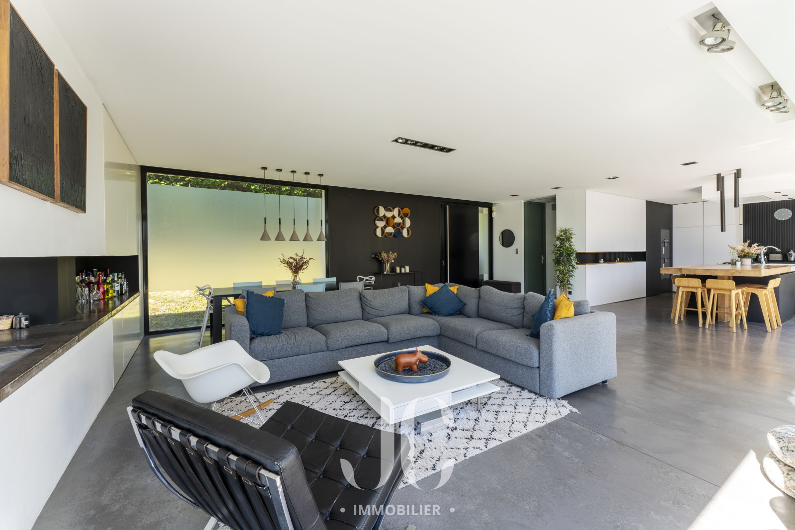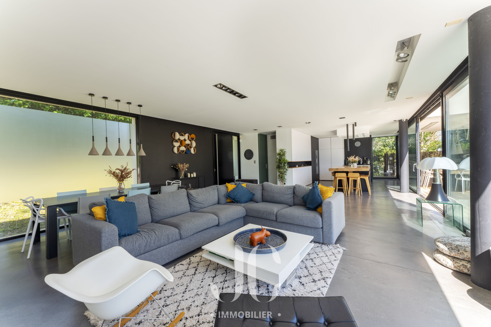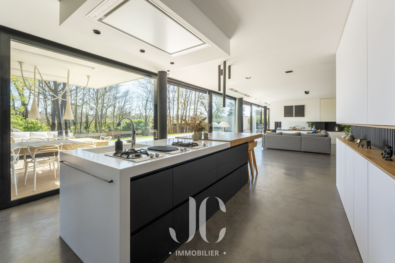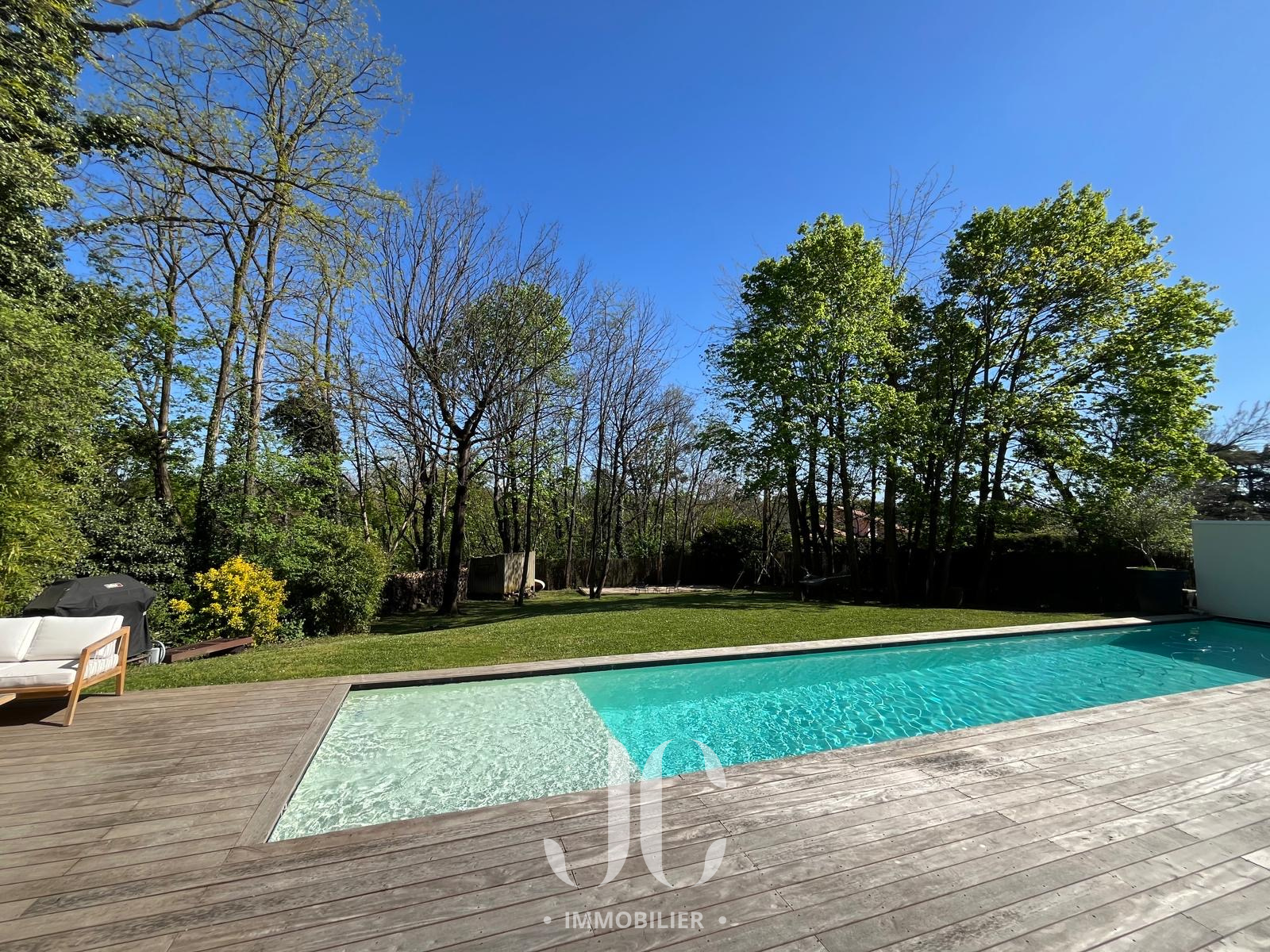A la lisière des Monts d'Or et de la commune très prisée de St Cyr, c'est nichée dans un cocon de verdure que cette maison contemporaine de 260m² vous ouvre ses portes. Dès l'entrée, elle saura vous charmer par les volumes et la luminosité de sa pièce de réception permettant de profiter en toute quiétude du jardin de 1160m² magnifiquement arboré et d'une terrasse hébergeant une magnifique piscine de 18 x 3. Les larges baies vitrées sur la totalité de la façade vous confèrent un esprit dedans/dehors unique. A ce niveau de plain pied, vous profiterez d'une cuisine avec espace dinatoire complété par un cellier/buanderie, d'un salon de réception avec cheminée. Vous découvrirez ensuite toujours de plain pied, une Suite Parentale avec salle de bains et dressing, un bureau, un salon TV pouvant faire office de chambre. A l'étage, vous serez accueillis par un espace enfants, musique, salle de sport (ou chambre supplémentaire) à la baie vitrée incroyable permettant de s'adonner à ses activités en lien direct avec la nature. Deux belles chambres (possibilité 3) et une salle d'eau complètent cet espace nuit. En extérieur, le jardin est aménagée avec un terrain de pétanque laissant envisager de beaux moments de partage. Le stationnement est assuré par un car port de 3 places. N'hésitez pas à nous contacter et découvrons ensemble ce lieu de vie unique.