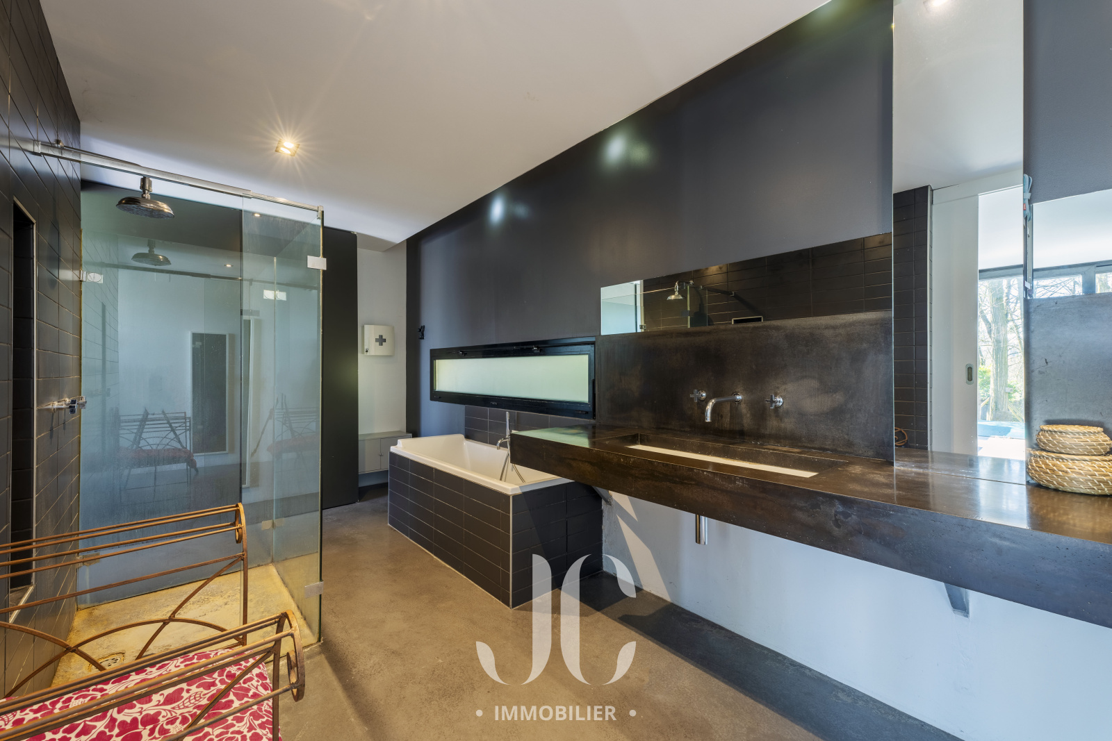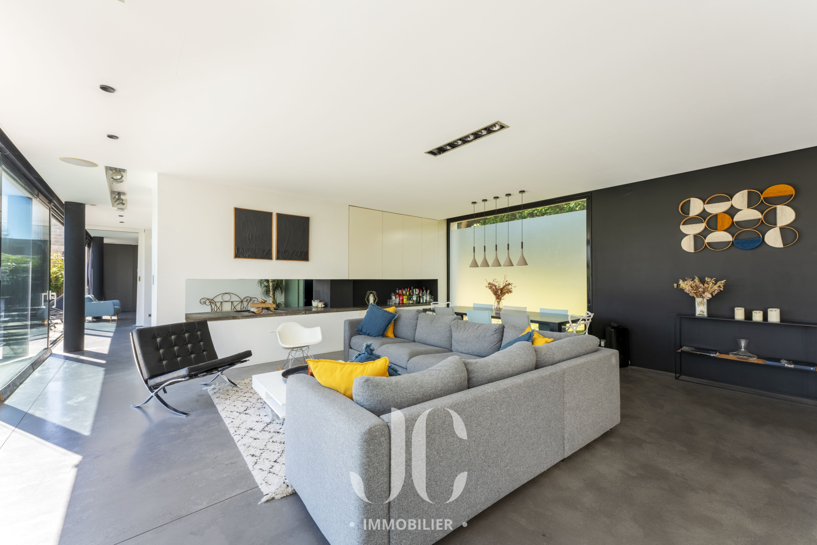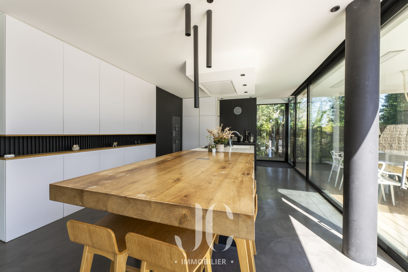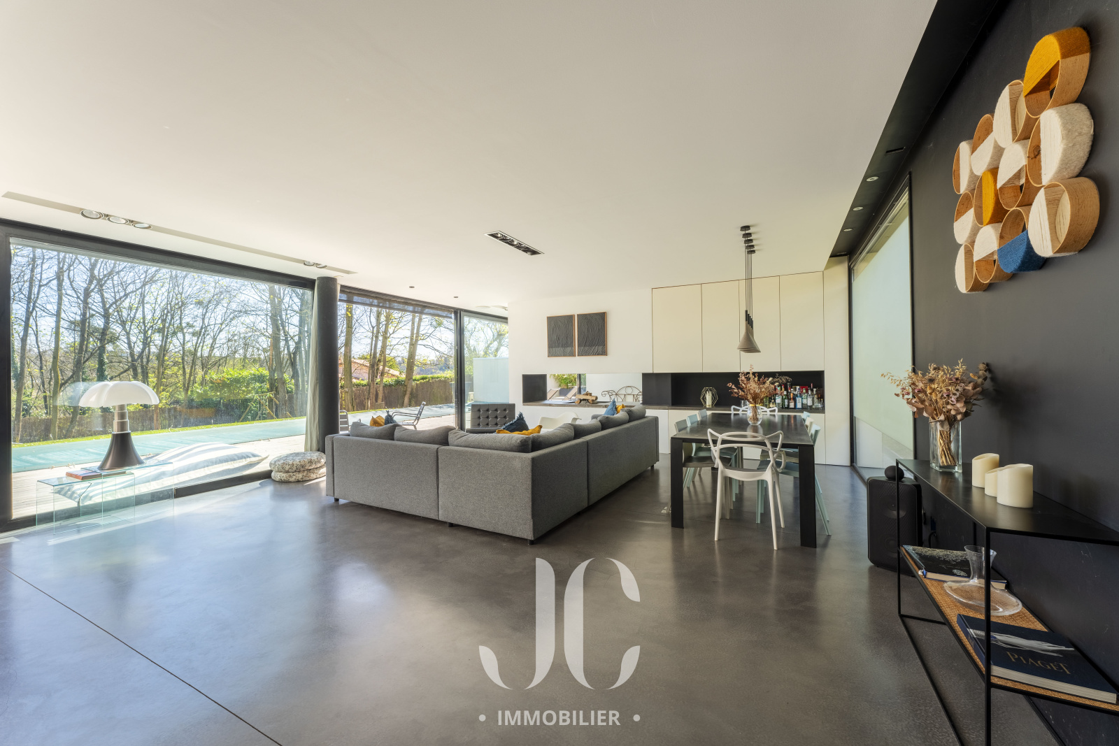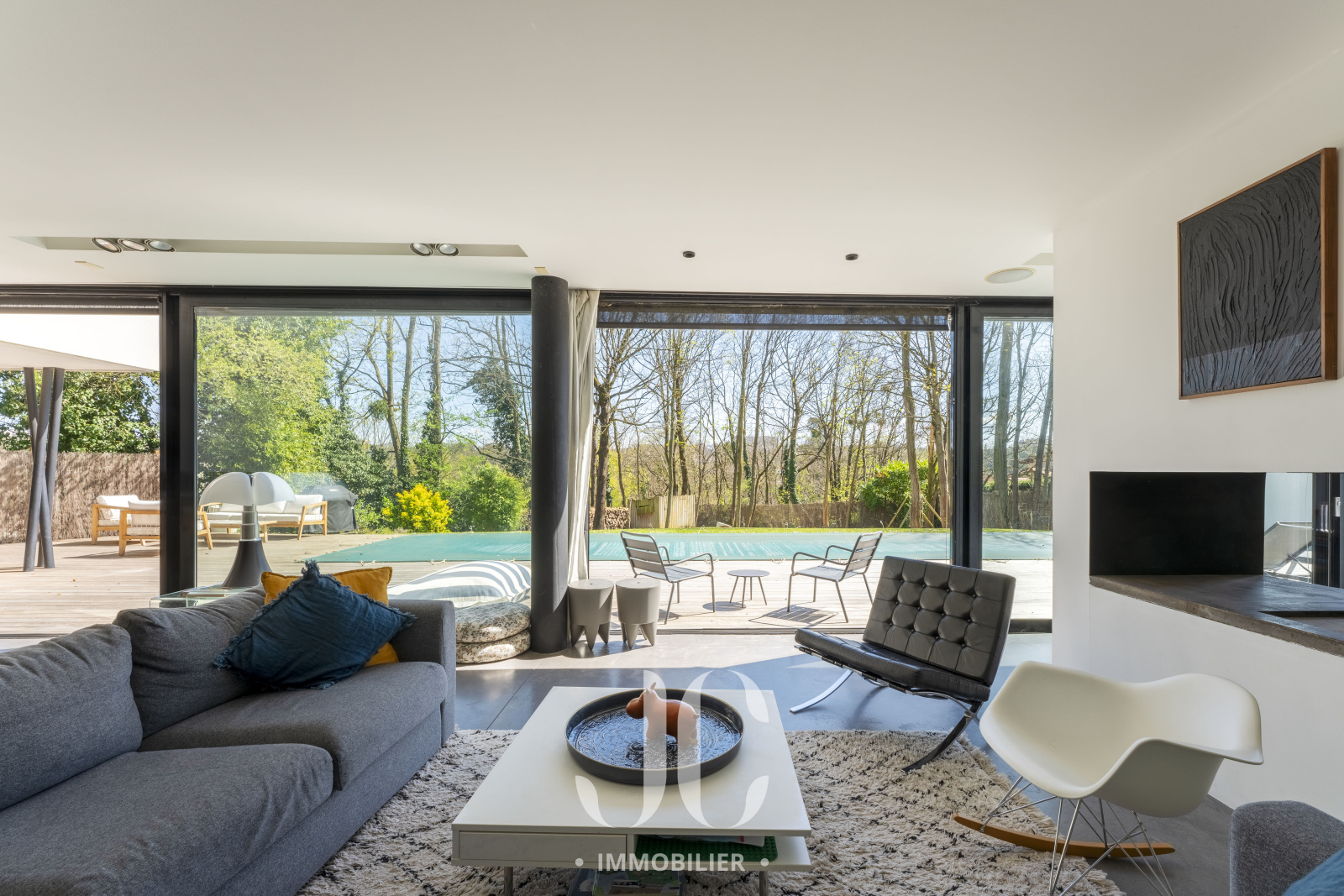 A la lisière des Monts d'Or et de la commune très prisée de St Cyr, c'est nichée dans un cocon de verdure que cette maison contemporaine de 260m² vous ouvre ses portes. Dès l'entrée, elle saura vous charmer par les volumes et la luminosité de sa pièce de réception permettant de profiter en toute quiétude du jardin de 1160m² magnifiquement arboré et d'une terrasse hébergeant une magnifique piscine de 18 x 3. Les larges baies vitrées sur la totalité de la façade vous confèrent un esprit dedans/dehors unique. A ce niveau de plain pied, vous profiterez d'une cuisine avec espace dinatoire complété par un cellier/buanderie, d'un salon de réception avec cheminée. Vous découvrirez ensuite toujours de plain pied, une Suite Parentale avec salle de bains et dressing, un bureau, un salon TV pouvant faire office de chambre. A l'étage, vous serez accueillis par un espace enfants, musique, salle de sport (ou chambre supplémentaire) à la baie vitrée incroyable permettant de s'adonner à ses activités en lien direct avec la nature. Deux belles chambres (possibilité 3) et une salle d'eau complètent cet espace nuit. En extérieur, le jardin est aménagée avec un terrain de pétanque laissant envisager de beaux moments de partage. Le stationnement est assuré par un car port de 3 places. N'hésitez pas à nous contacter et découvrons ensemble ce lieu de vie unique.