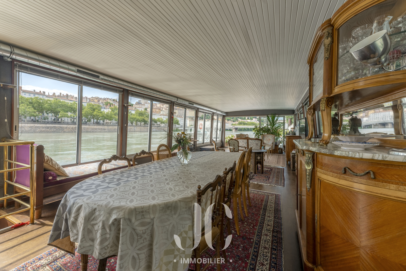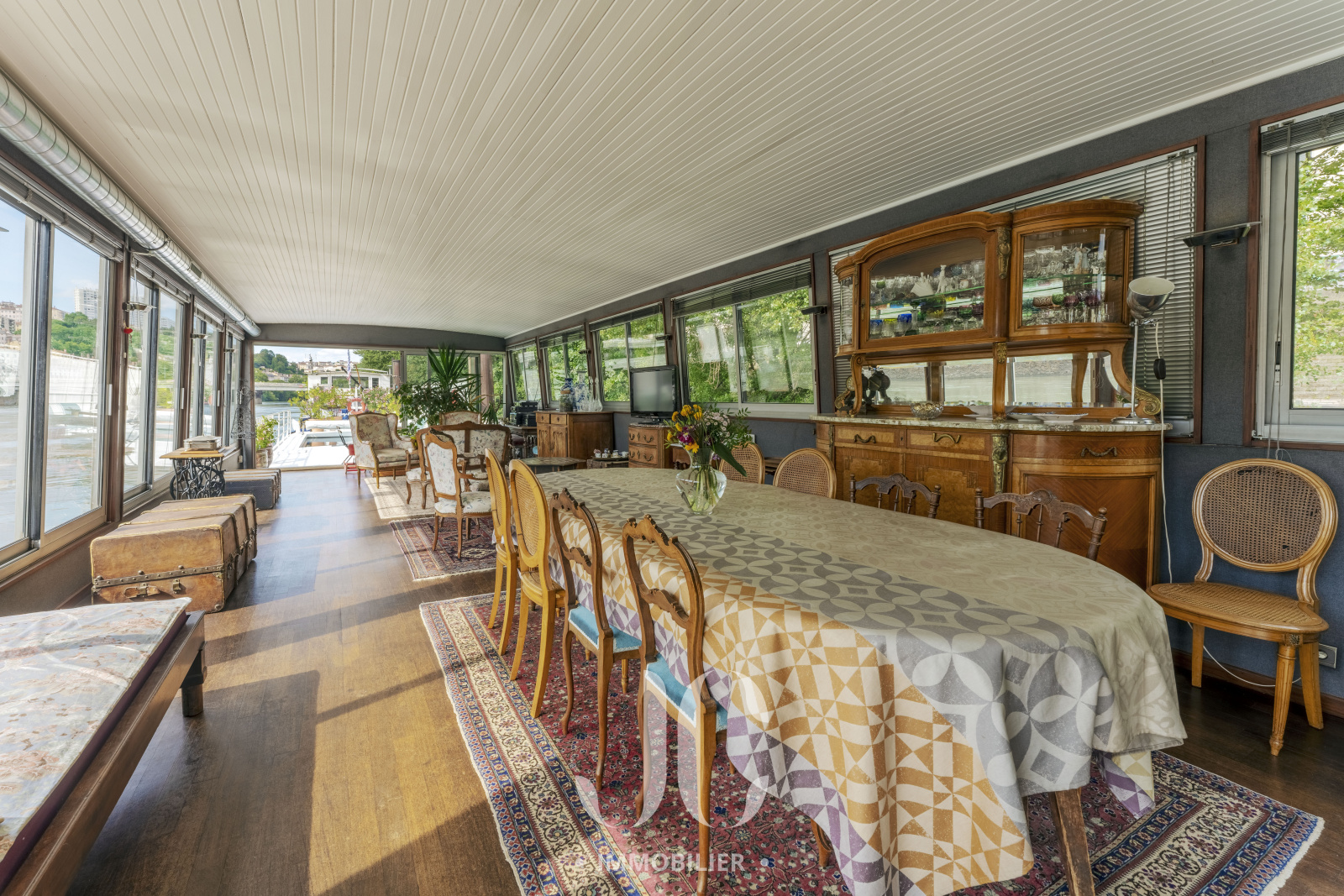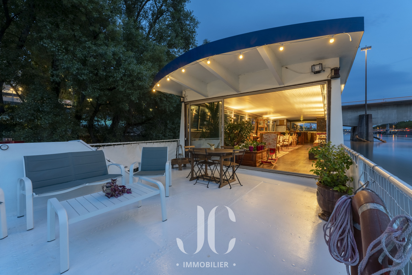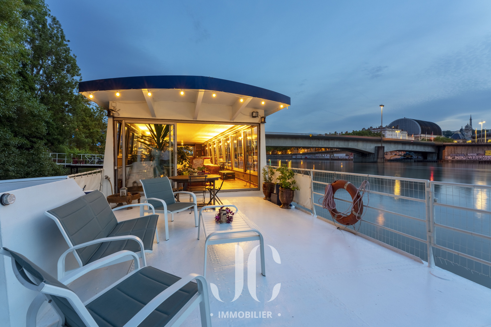 Il parait que la vie n'est pas un long fleuve tranquille, mais en découvrant ce lieu de vie unique d'une surface totale de 180m² vous pourrez constater qu'il n'en n'est rien tant la douceur de vivre sur cette péniche vous emportera dans un sentiment de bien être total. Idéalement située à proximité de toutes les commodités et en lisière du Triangle d'Or du très prisé 6ème arrondissement, cette péniche ne vous propose pas qu'un lieu de vie mais plutôt un véritable Art de vivre !!! Protégée par un environnement végétalisé luxuriant, son accès se fait en toute discrétion et en toute sécurité grâce à un ponton électrique escamotable du type "pont-levis". L'entrée se fait par le poste de pilotage et vous découvrirez alors l'espace de vie incroyable composé d'un très spacieux espace de réception et du charmant espace culinaire, baigné de lumière grâce aux larges baies vitrées donnant ainsi accès à une vue imprenable sur le Rhône et la ville. La sensation de profiter d'un mode de vie "dedans/dehors" prend alors tout son sens d'autant que vous découvrirez ensuite la magnifique terrasse et de son élégante piscine !! De jour comme de nuit vous aurez en permanence le privilège de profiter d'une ambiance incroyable vous laissant croire à un lieu de villégiature permanent. En niveau inférieur, l'espace nuit propose 4 chambres, une salle de bains et une salle d'eau. Chaque niveau est équipé de wc indépendants. Equipée d'une pompe à chaleur, le confort n'est pas en reste. Les mots ne suffisent pas pour décrire ce lieu de vie, alors rendons nous sur place pour découvrir cette résidence unique !!! Et comme un plaisir ne vient jamais seul, pas de frais de notaire lors de l'acquisition d'une péniche !! Visite décennale réalisée en Avril 2024.