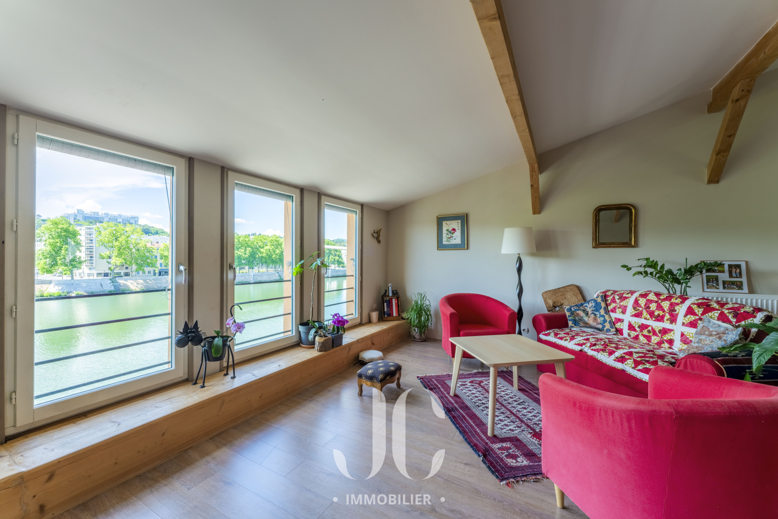 Dès l’entrée, vous découvrez une grande pièce de vie de 45 m², avec une vue imprenable sur la Saône. La cuisine entièrement équipée, ouverte sur le séjour, crée une atmosphère conviviale et chaleureuse, parfaite pour recevoir. Une suite parentale avec salle d'eau privative complète ce niveau. Un magnifique escalier en colimaçon vous mène à l’étage supérieur, où vous trouverez un second salon, idéal comme espace détente. Vous y trouverez également deux chambres, un bureau, une salle de bains, ainsi qu’un WC indépendant. Cet étage donne accès à un petit jardin privatif, un véritable coin de verdure en pleine ville, pour profiter de l’extérieur en toute tranquillité. Un garage fermé de 40 m² vient compléter ce bien, offrant un bel espace de stationnement et de rangement.