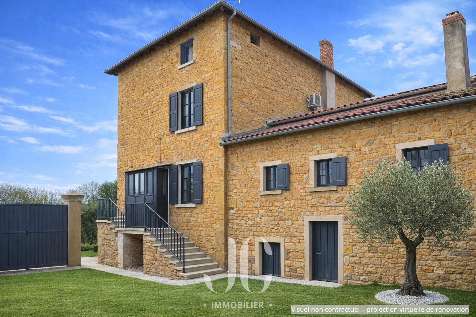 Située à Lissieu, commune recherchée de l’Ouest lyonnais, située aux portes des Monts d’Or, cette authentique bâtisse en pierres dorées ne demande qu'à retrouver tout son éclat !