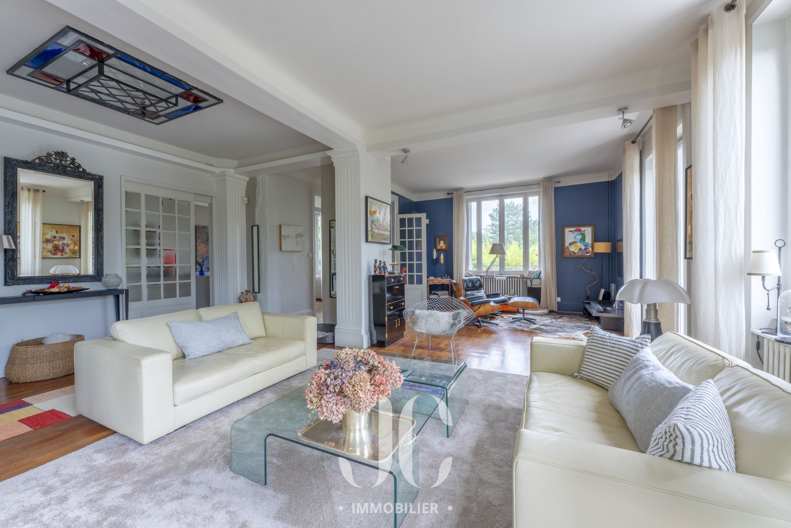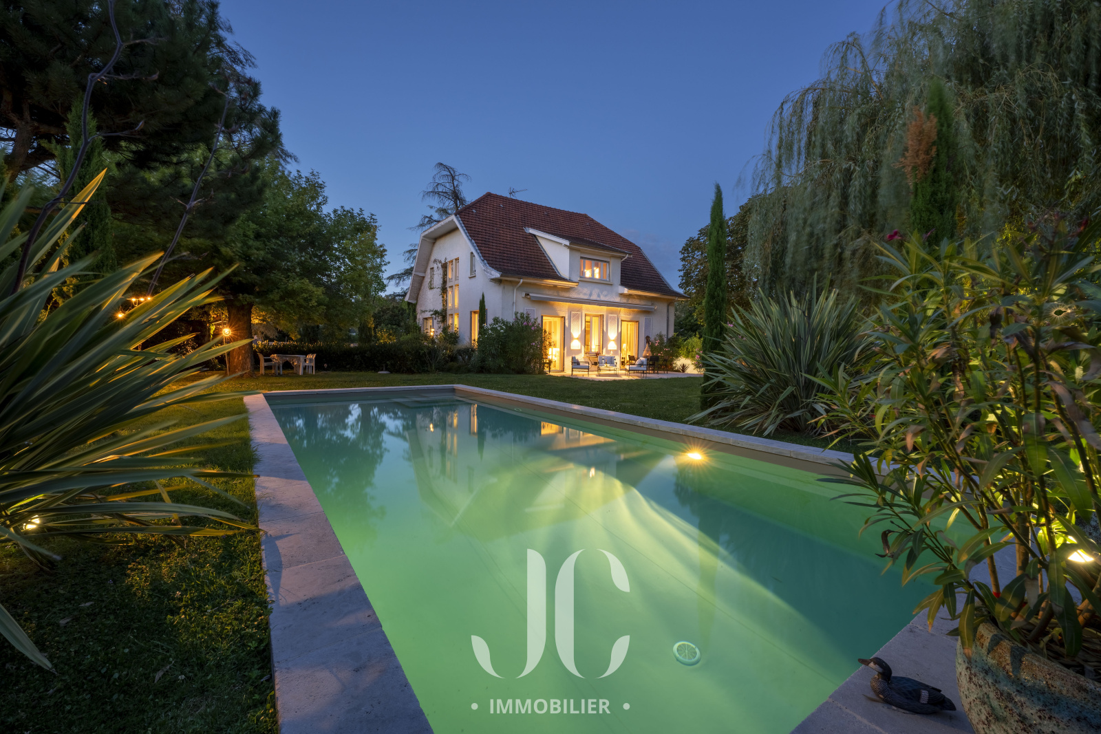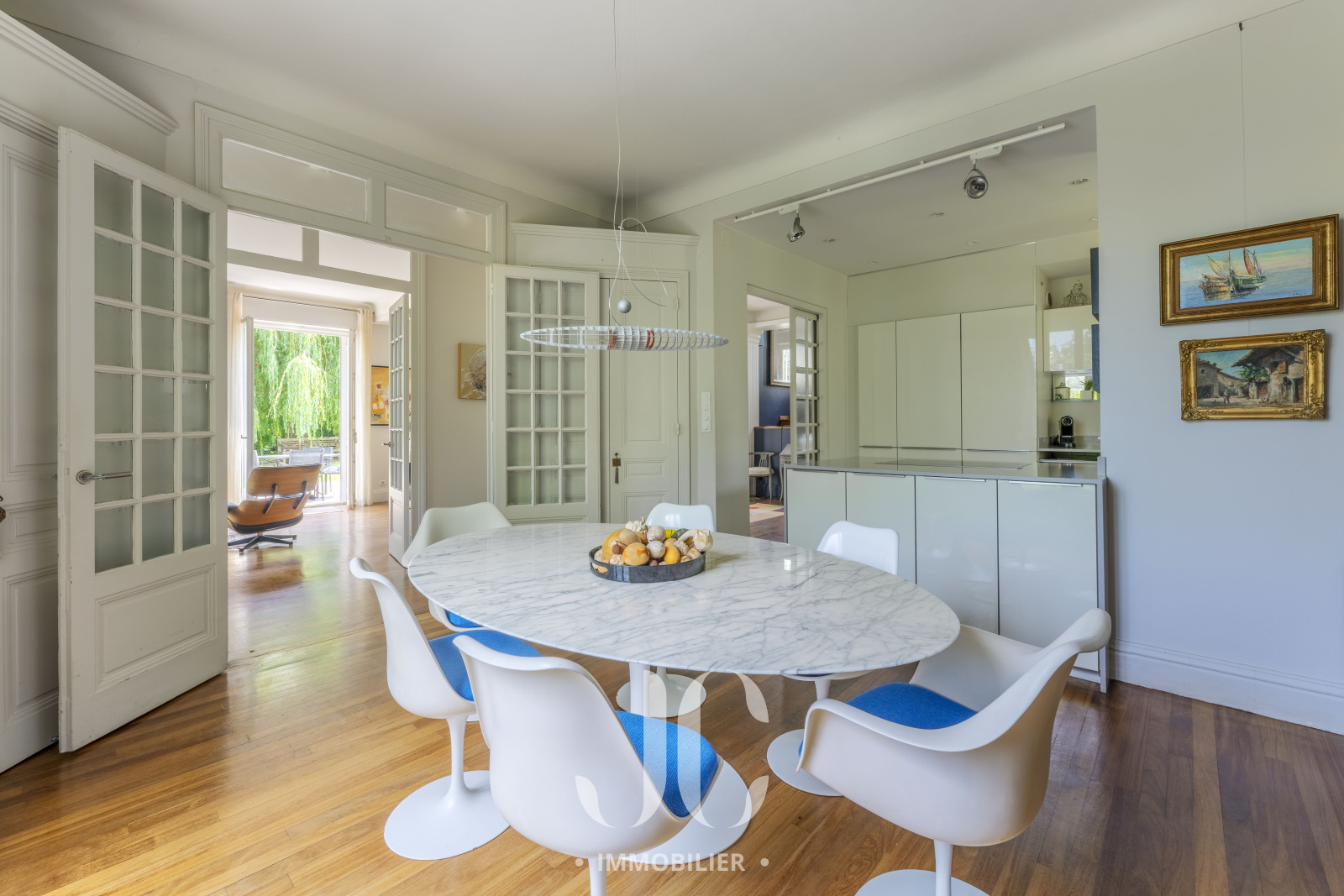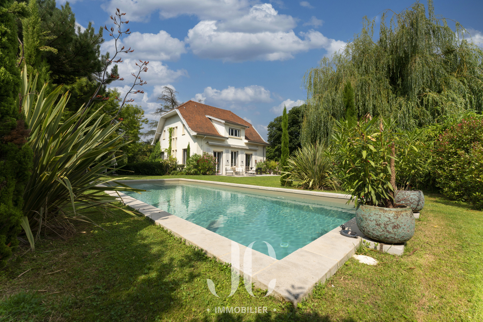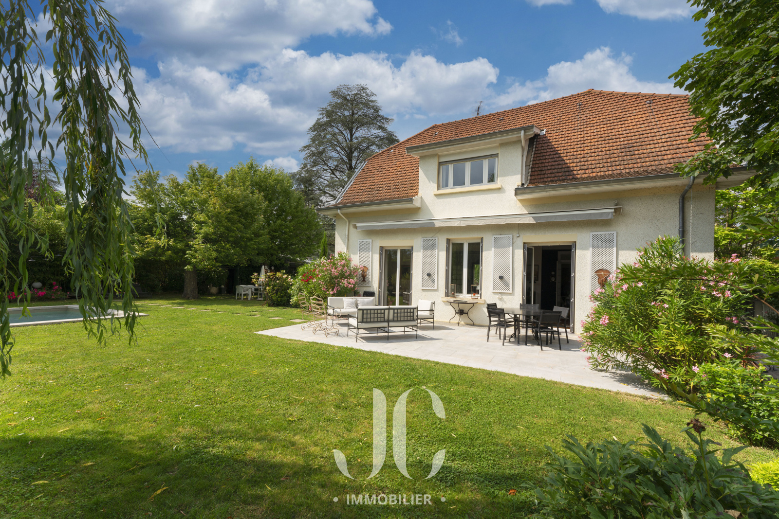 Le charme de cette propriété opère dès le portail franchi car vous découvrirez alors un magnifique jardin superbement végétalisé et profitant d'une piscine chauffée aux airs de bassin naturel. C'est sur une parcelle de 1516m² que vous découvrirez alors cette charmante maison de famille de 200m² d'un style Art Déco qui saura vous séduire. En rez de chaussée la très spacieuse pièce de réception extrêment lumineuse vous laisse profiter d'une vue enjôleuse sur le jardin ainsi qu'un accès à la terrasse qui saura vous transporter vers des moments de détente totale en jouissant d'un calme absolu. Ensuite, vous découvrirez la cuisine, qui est parfaitement aménagée et profite d'un espace dinatoire très confortable. Elle bénéficie également d'un espace supplémentaire grâce à une véranda au style d'époque. L'ensemble étant élégament aménagé, il donne un sentiment de bien être immédiat que vous saurez apprécier. Au niveau supérieur, le palier vous laissera découvrir une élégante bibliothèque et la partie nuit est compposée de quatre chambres dont une Suite avec salle de bains et dressing. Une salle de bains indépendante complète cet étage. L'ensemble bénéficiant du charme des maisons familiales au sein desquels il fait bon se retrouver. Découvrons ensemble ce lieu de vie nichée au milieu d'un coin de nature insoupçonné !!!