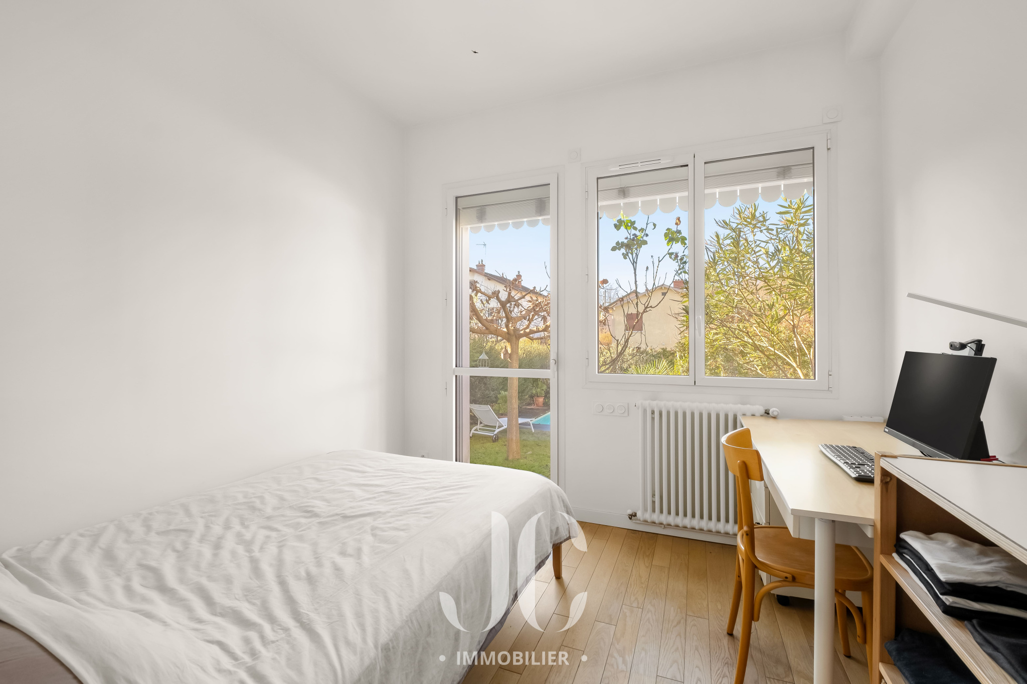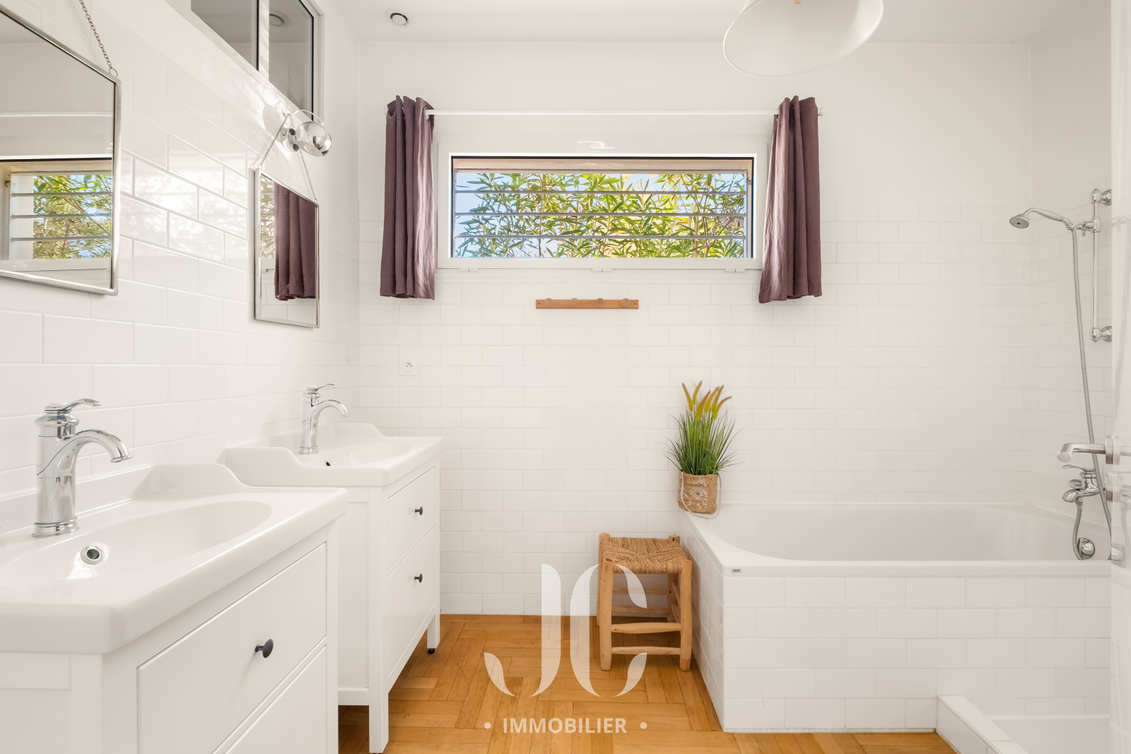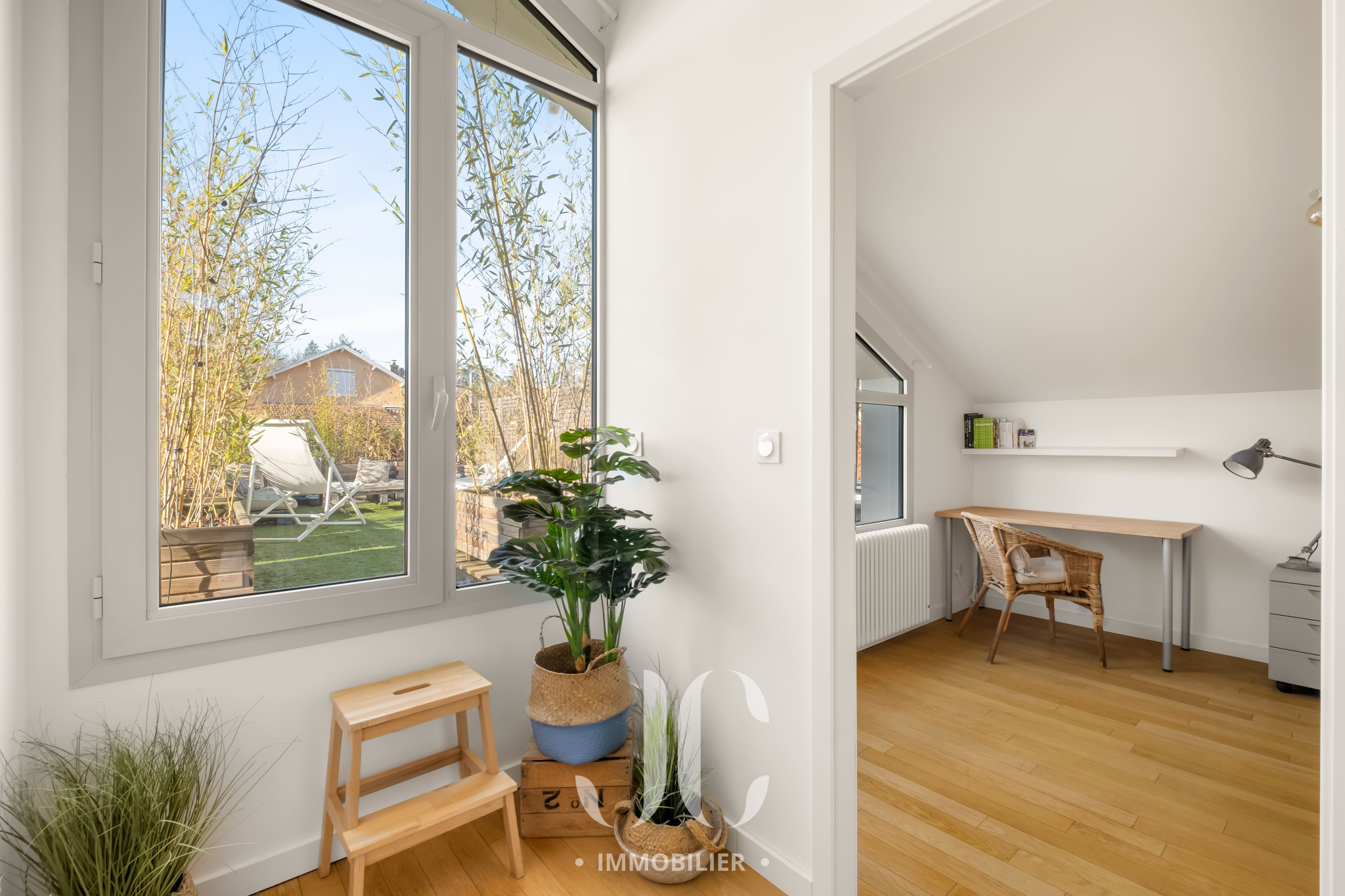En niveau inférieur, une suite indépendante avec salle d’eau et WC offre de multiples possibilités : espace invités, jeune adulte, profession libérale ou lieu confidentiel dédié au bien-être.