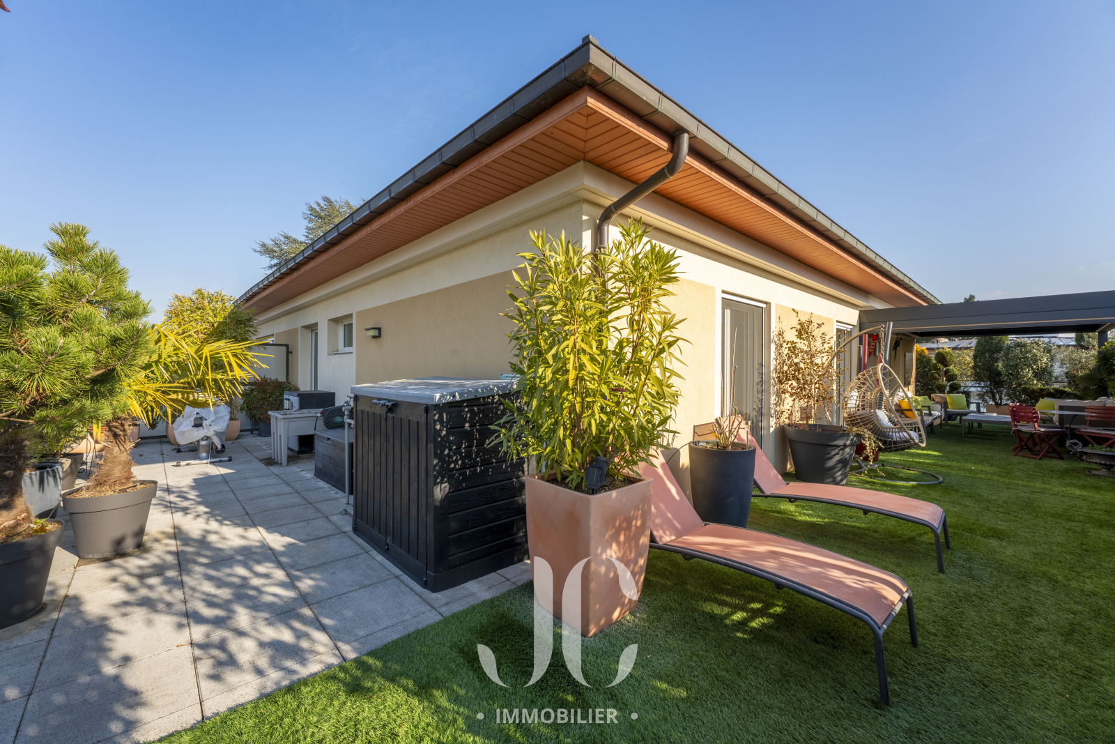 C'est au coeur d'une résidence de standing avec piscine que vous découvrirez cet appartement aux prestations rares et aux airs de maison sur le toit. Situé en dernier étage, la magnifique terrasse de 170m² enlace l'appartement, donnant ainsi à chaque pièce un accès à l'extérieur. Subtilement aménagée et entièrement végétalisée cette terrasse laisse accès à différents espaces de réception, dinatoire ou encore pour quelques exercices sportifs. L'appartement lui-même, bénéficie d'une très grande fonctionnalité grâce à une distribution idéale. L'entrée spacieuse vous donnera accès à la magnifique pièce principale de 50m², regroupant salon de réception et espace dinaoire. En angle, elle permet de profiter de plusieurs accès à la terrasse. La cuisine profite également d'un accès direct à la terrasse permettant ainsi de profiter d'un espace dinatoire tant en extérieur qu'à l'intérieur selon vos envies. La partie nuit est composée de trois chambres, dont une Suite avec salle d'eau privative. Une salle de bains complète cet espace. Ce bien unique dispose d'un garage double et d'une cave. Découvrons ensemble ce lieu de vie très rare !!!