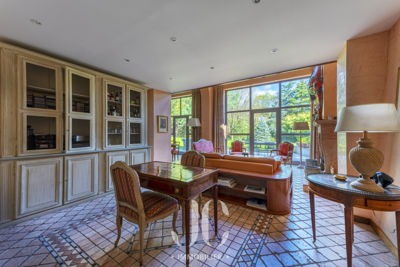 UNIQUE !!! Certains lieux pourraient se passer de commentaires tant ils vous transportent dans un univers insoupçonné. Comment imaginer un tel hâvre de paix à quelques minutes du centre de Lyon. Cette propriété saura vous séduire dès le portail franchi lorsque vous découvrirez le magnifique parc de 5100m² avec piscine. La bâtisse de près de 400m² plus dépendances, est ainsi nichée dans un environnement naturel somptueux, clos de murs et profitant d'un calme absolu. En rez de chaussée, la pièce de réception bénéficie d'une magnifique vue sur le parc, et regroupe : salon, cuisine et espace dinatoire, donne accès à une splendide terrasse sur laquelle on s'imagine aisément profiter de moments de convivialité en famille ou entre amis. Ce niveau est complété par deux charmants salons qui peuvent laisser place à de nombreux usages tels que bibilothèque, salon TV etc.. En demi-niveau nous découvrirons un espace surplombant judicieusement la pièce de réception tout en profitant d'une large vue sur le parc. Deux chambres, dont une Simple Suite complète ce niveau. A l'étage, un espace nuit composé d'une chambre avec salle de bains et salon pouvant être réservé à usage de dressing, et également d'une Suite avec salle d'eau et accès indépendant sur l'extérieur. Au fil de la visite nous découvrirons également un espace type Pool House pouvant être aménagé en salle de sport, cave à vins, buanderie, garage pour plusieurs véhicules. Les dépendances d'une surface d'env 400m² peuvent laisser place à de nombreux usages, bureaux, réception, logement indépendant.... Il est certain que cette propriété offre des conditions de vie exceptionnelles que les mots ne suffiront à décrire, et nous sommes à votre disposition pour vous faire découvrir ce lieu sans plus tarder !!!