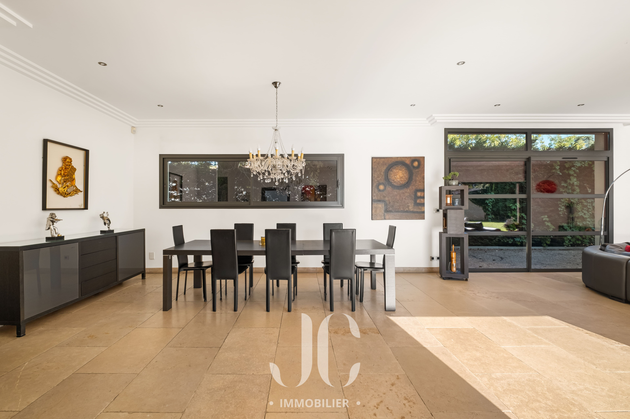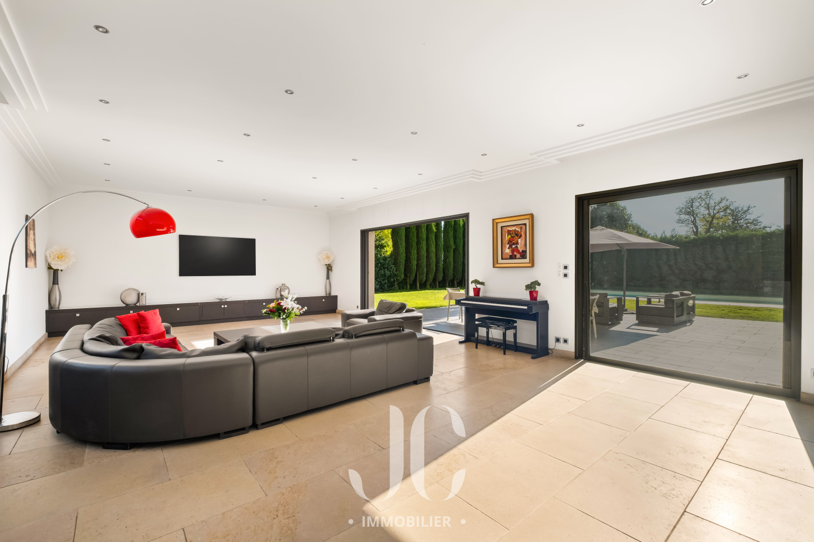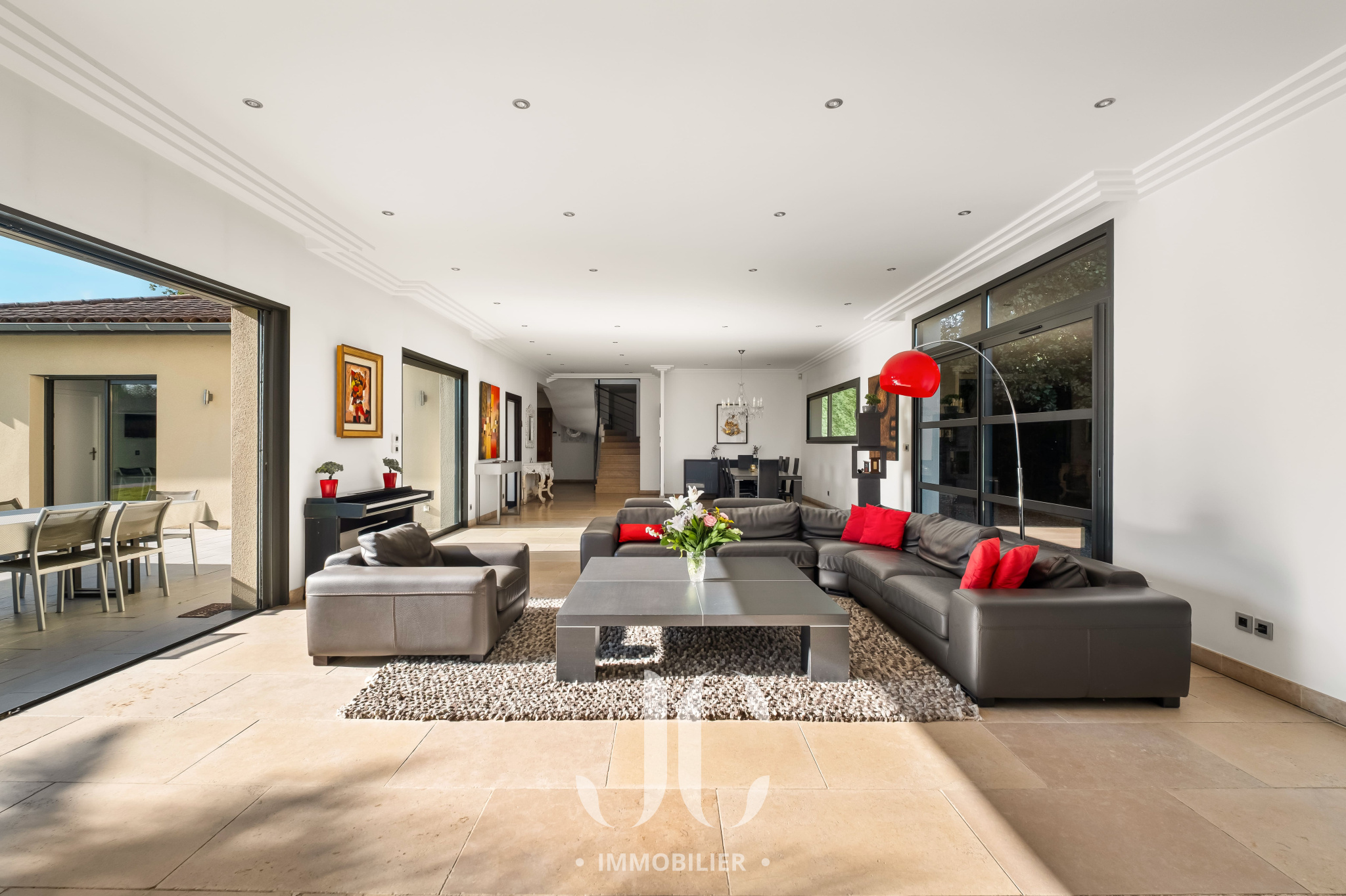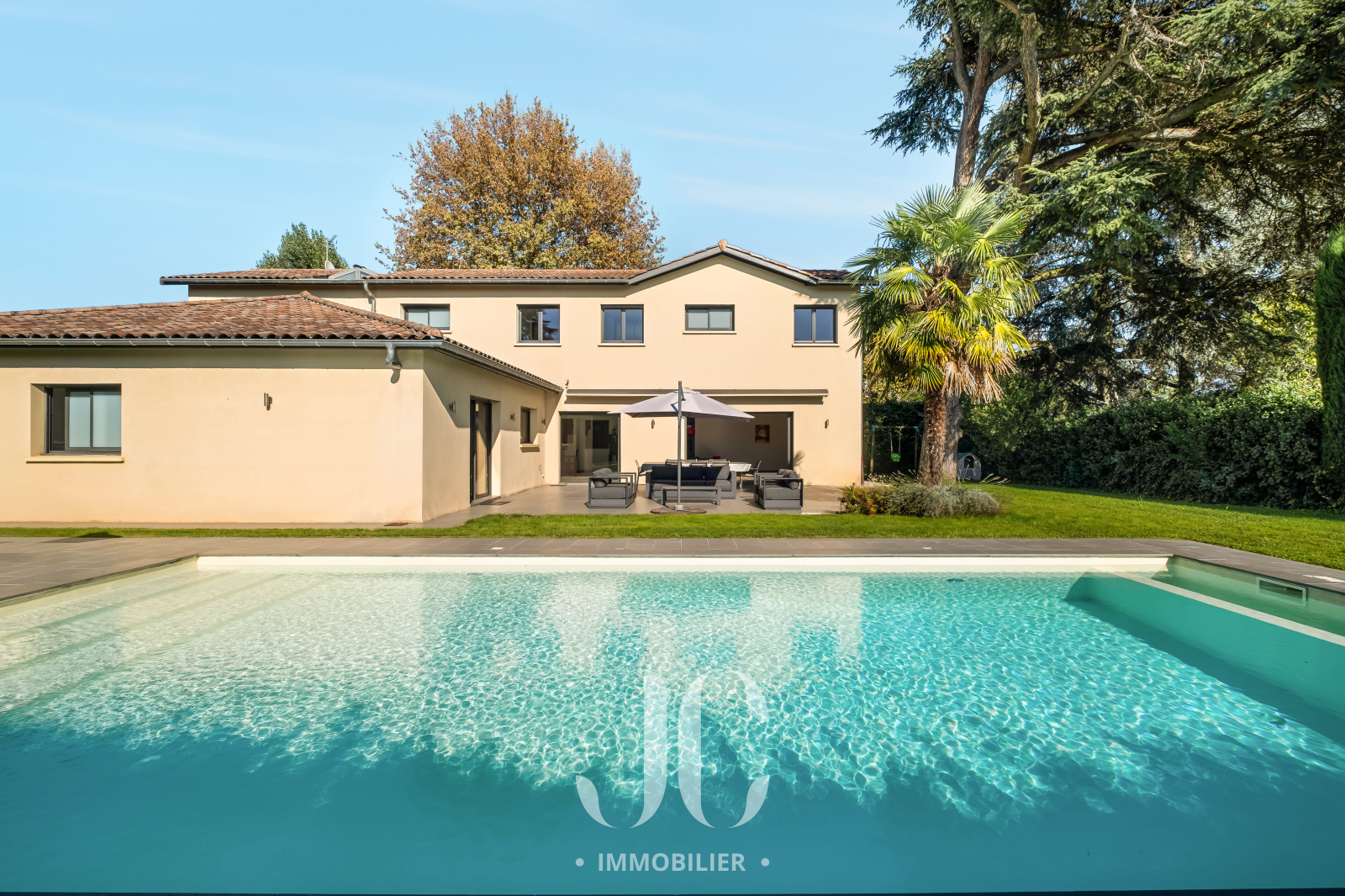 Cette propriété située au coeur d'une résidence magnifiquement arborée, vous fera à coup sûr, vivre des moments inoubliables de partage en famille et/ou entre amis. C'est la maison du bonheur, faite pour recevoir confortablement dans des conditions faisant plus référence à un lieu de villégiature qu'à une résidence principale. Et pourtant c'est bien là que vous profiterez au quotidien du confort qu'elle vous propose. En franchissant la porte d'entrée vous découvrirez alors une très spacieuse entrée donnant accès à une exceptionnelle pièce de réception de 100m² bénéficiant de nombreuses baies ouvrant sur la terrasse. Ainsi vous serez émerveillés par la luminisité permanente et par le sentiment que l'esprit dedans/dehors est une réalité en chaque instant. En terme d'espace, la cuisine de 30m² n'est pas en reste et propose un espace dinatoire ainsi qu'un cellier. De plain pied également, nous découvrirons une très spacieuse Master Suite avec la chambre ayant un accès direct au jardin, une salle de bains, dressing et wc. A ce niveau, un confortable bureau est également proposé ainsi qu'une buanderie et un accès au garage. A l'étage, nous restons dans un univers où l'espace et la luminosité sont au rendez-vous. Tout d'abord le palier fera son effet, avec un puits de lumière apportant un cachet incroyable, et vous donnera accès un espace nuit d'une rare dimension avec 4 chambres. Une première chambre desservie par une salle d'eau et un dressing. Deux autres chambres, bénéficiant d'une salle d'eau commune et une Suite complétant l'ensemble. Les surprises ne sont pas terminées car un sous-sol aménagé vous tend les bras avec un espace de 120m² pouvant être affecté à de nombreuses activités, salle de sport, salle de projection... Nous ne pouvons pas terminer cette visite sans être enthousiasmés par le jardin élégament arboré et profiant d'une magnifique piscine avec Pool House. Les mots ne suffisant pas pour présenter un tel lieu qu'une visite s'impose !!!