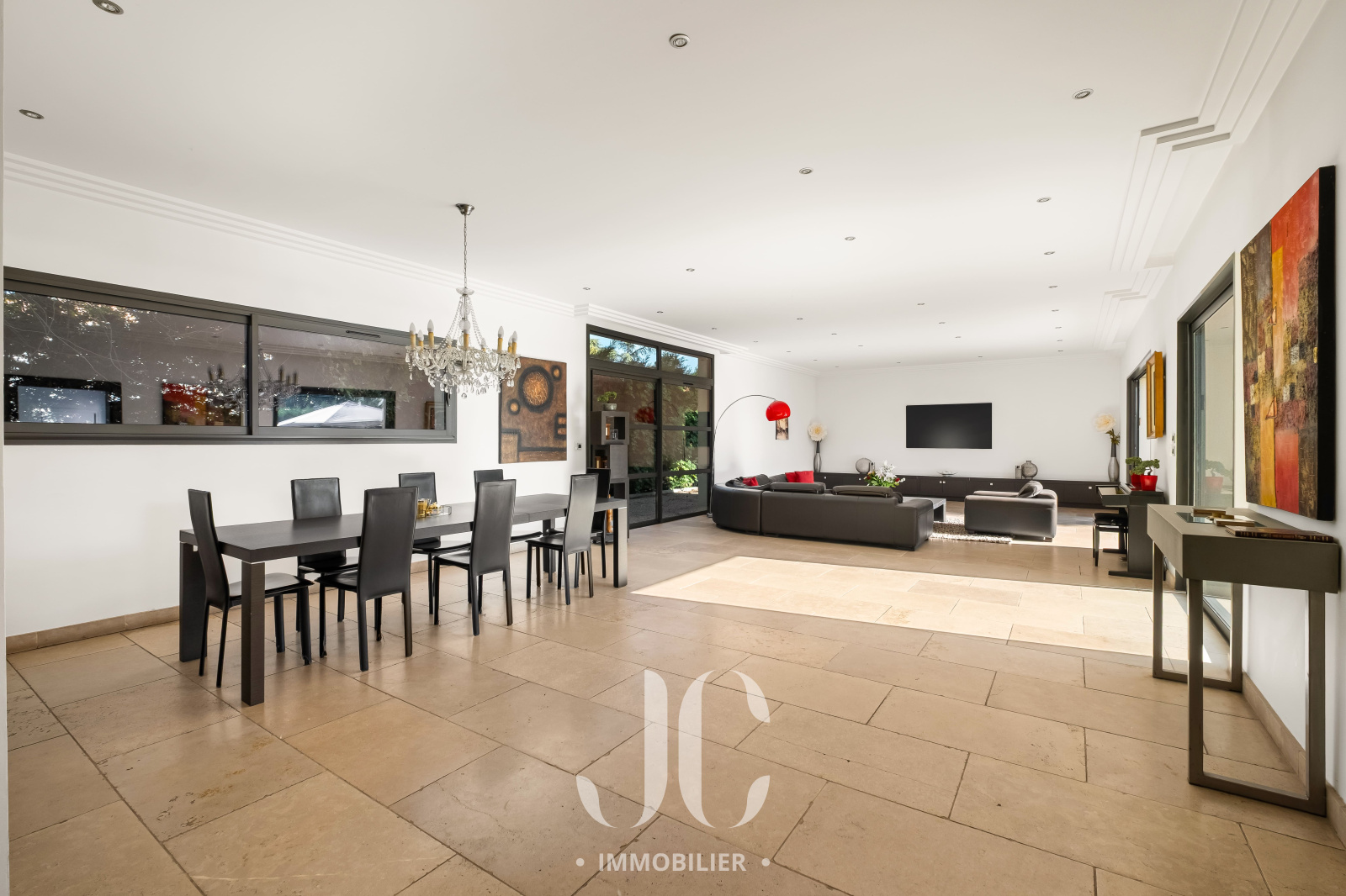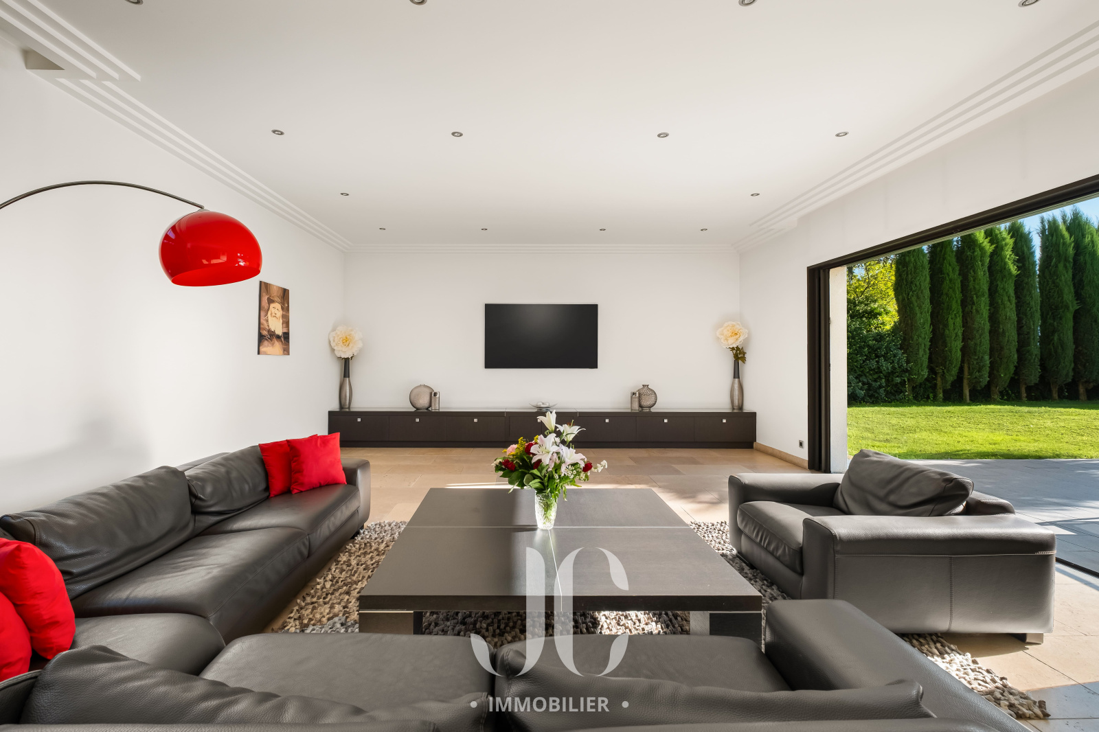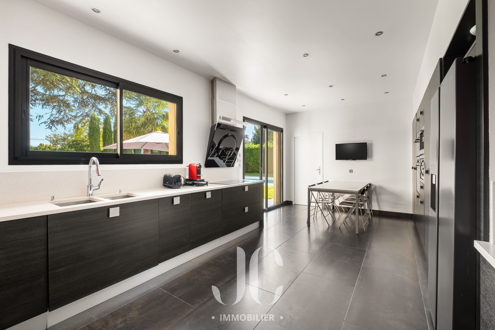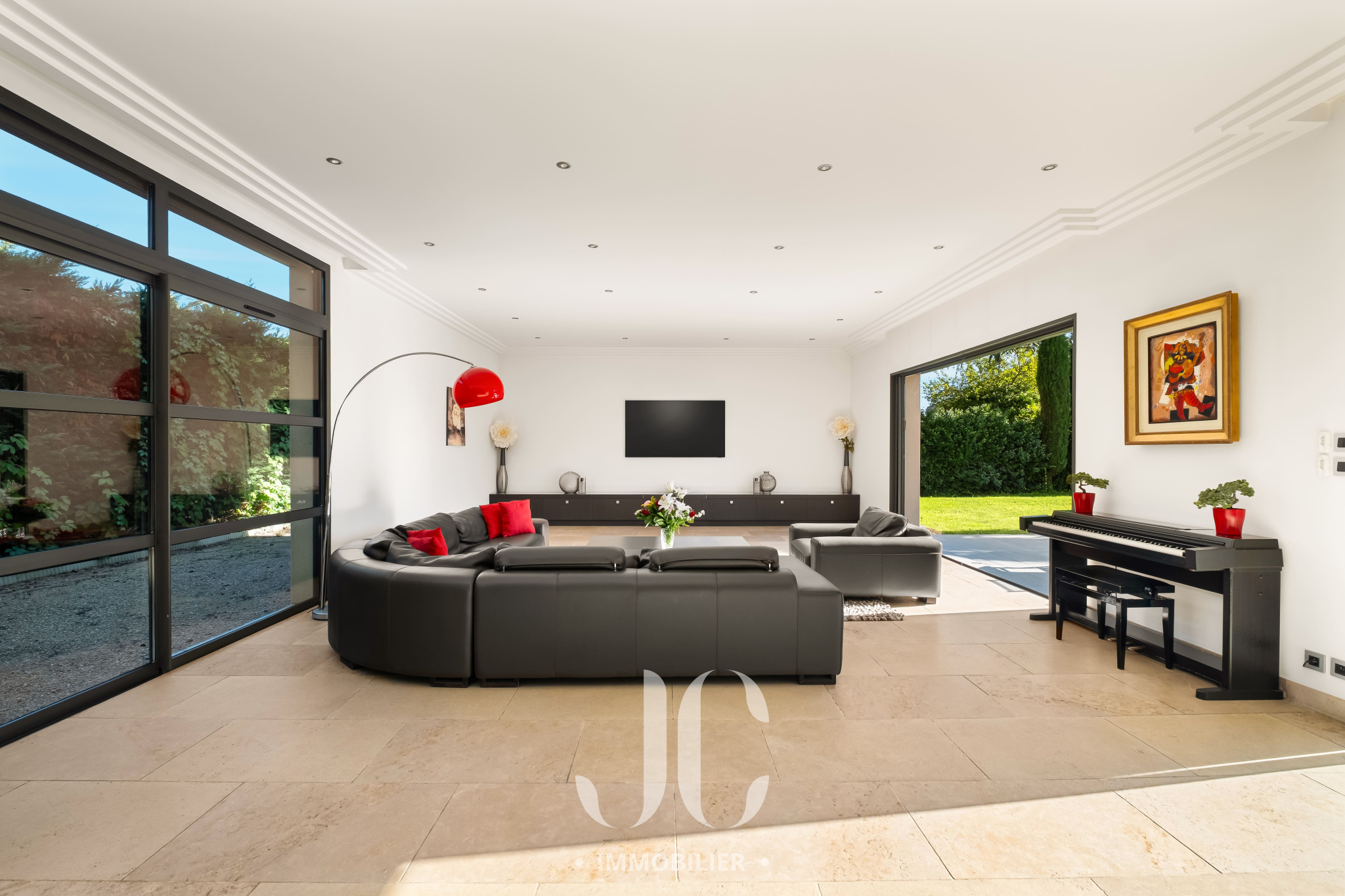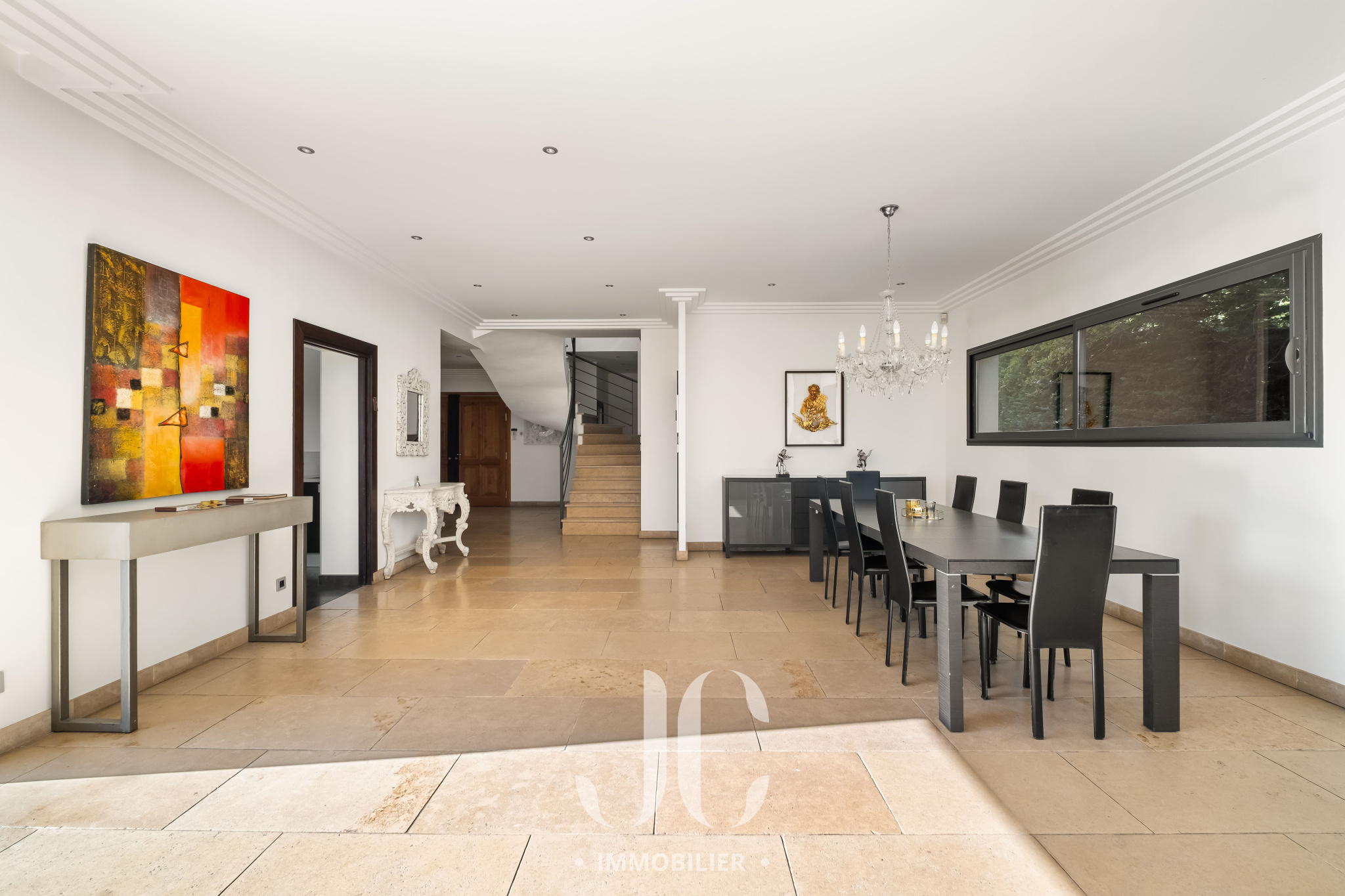 Cette propriété située au coeur d'une résidence magnifiquement arborée, vous fera à coup sûr, vivre des moments inoubliables de partage en famille et/ou entre amis. C'est la maison du bonheur, faite pour recevoir confortablement dans des conditions faisant plus référence à un lieu de villégiature qu'à une résidence principale. Et pourtant c'est bien là que vous profiterez au quotidien du confort qu'elle vous propose. En franchissant la porte d'entrée vous découvrirez alors une très spacieuse entrée donnant accès à une exceptionnelle pièce de réception de 100m² bénéficiant de nombreuses baies ouvrant sur la terrasse. Ainsi vous serez émerveillés par la luminisité permanente et par le sentiment que l'esprit dedans/dehors est une réalité en chaque instant. En terme d'espace, la cuisine de 30m² n'est pas en reste et propose un espace dinatoire ainsi qu'un cellier. De plain pied également, nous découvrirons une très spacieuse Master Suite avec la chambre ayant un accès direct au jardin, une salle de bains, dressing et wc. A ce niveau, un confortable bureau est également proposé ainsi qu'une buanderie et un accès au garage. A l'étage, nous restons dans un univers où l'espace et la luminosité sont au rendez-vous. Tout d'abord le palier fera son effet, avec un puits de lumière apportant un cachet incroyable, et vous donnera accès un espace nuit d'une rare dimension avec 4 chambres. Une première chambre desservie par une salle d'eau et un dressing. Deux autres chambres, bénéficiant d'une salle d'eau commune et une Suite complétant l'ensemble. Les surprises ne sont pas terminées car un sous-sol aménagé vous tend les bras avec un espace de 120m² pouvant être affecté à de nombreuses activités, salle de sport, salle de projection... Nous ne pouvons pas terminer cette visite sans être enthousiasmés par le jardin élégament arboré et profiant d'une magnifique piscine avec Pool House. Les mots ne suffisant pas pour présenter un tel lieu qu'une visite s'impose !!!