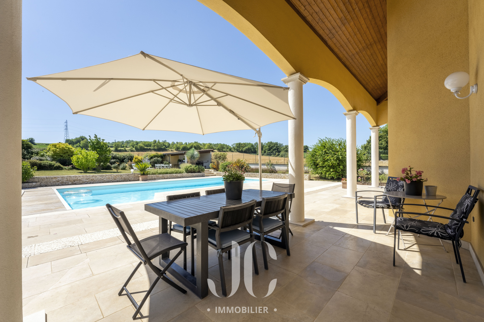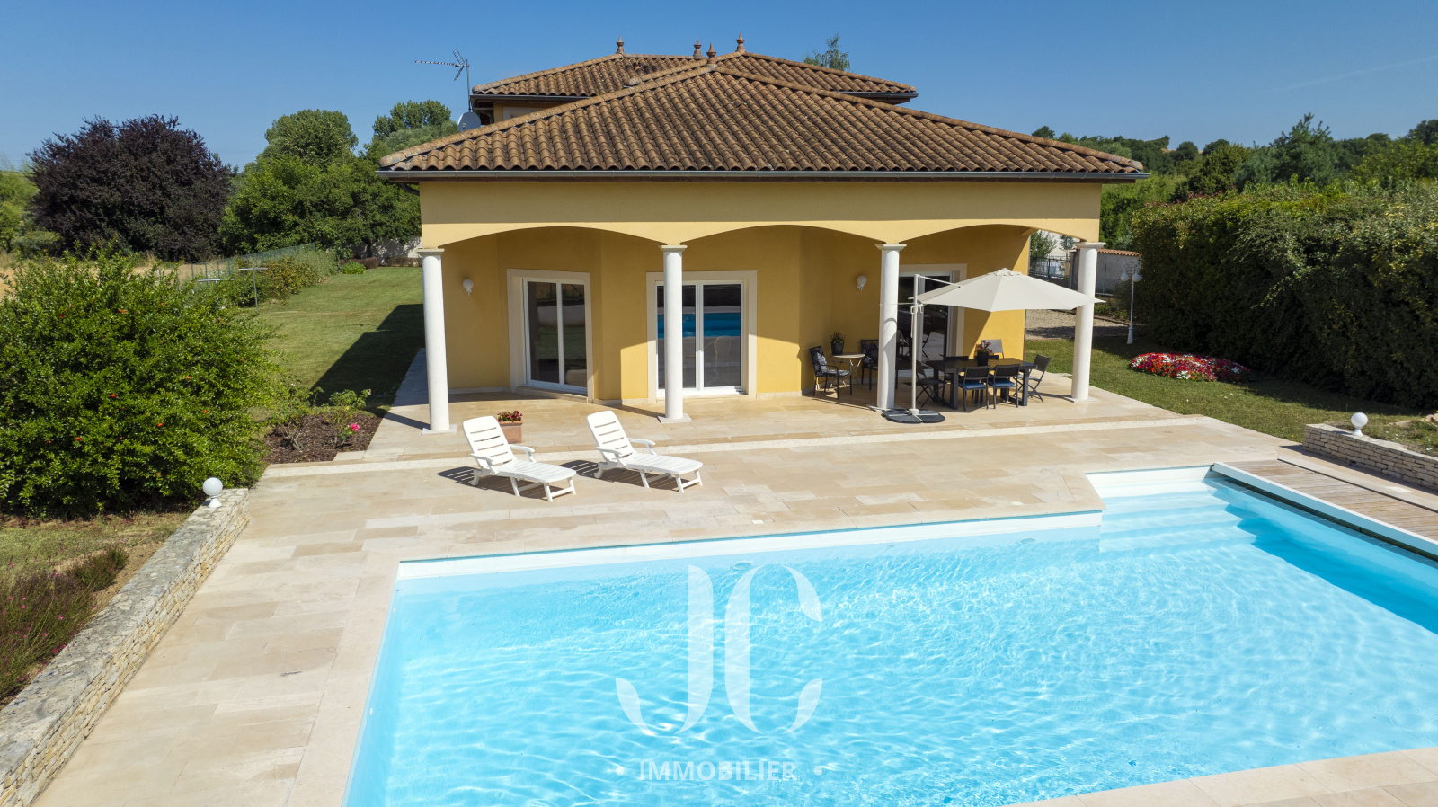 Un Extérieur de Rêve, Sans Vis-à-Vis : L'extérieur est une invitation à la détente absolue. Le jardin, conçu avec soin, met en valeur la beauté des matériaux haut de gamme, notamment la magnifique pierre de Bourgogne. Au cœur de cet écrin de verdure, une grande piscine vous attend, Une cuisine d'été entièrement équipée, abritée sous une structure élégante qui intègre également un pool house, promet des moments inoubliables en plein air. L'absence totale de vis-à-vis garantit une tranquillité absolue et un calme incomparable.