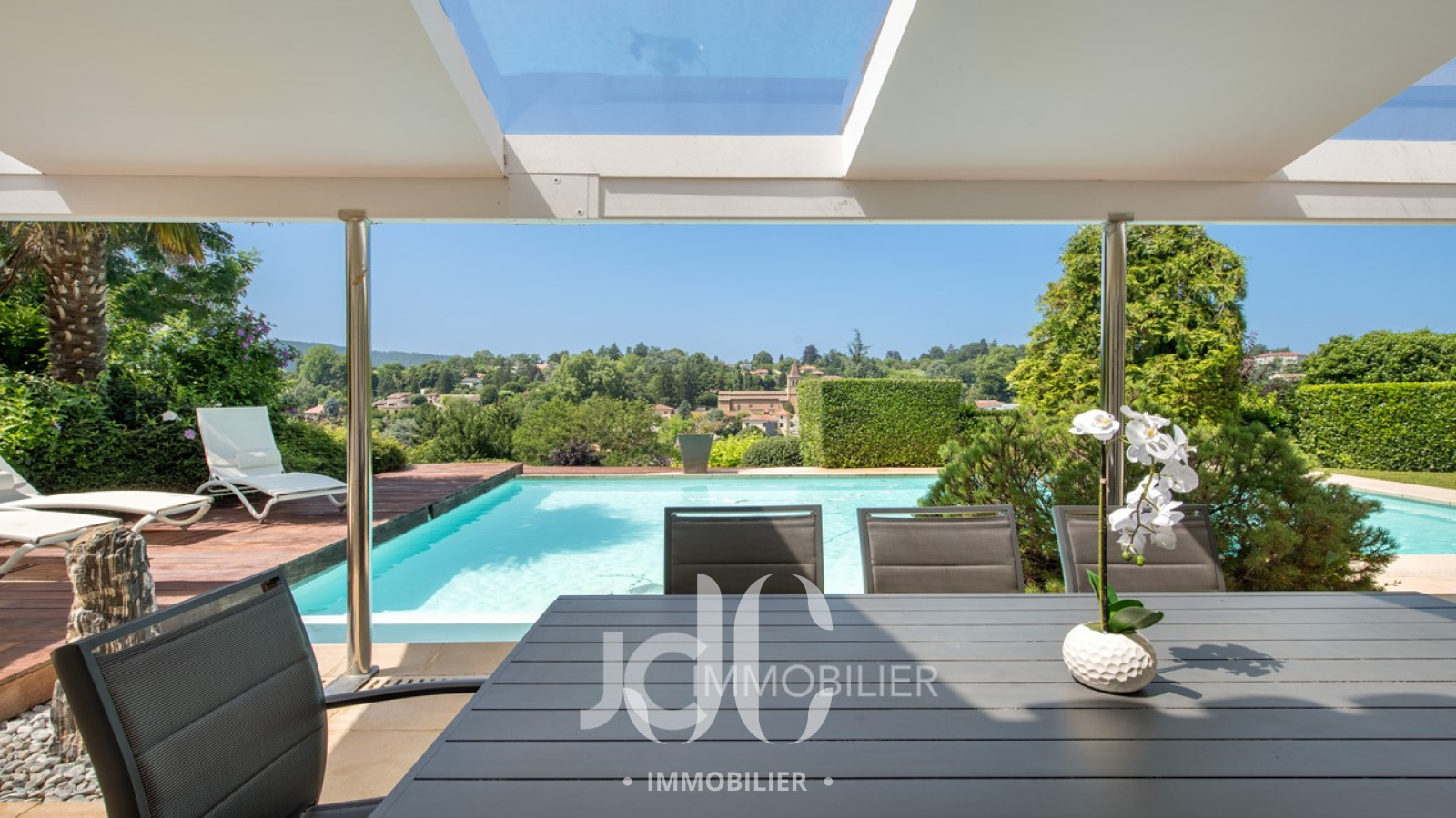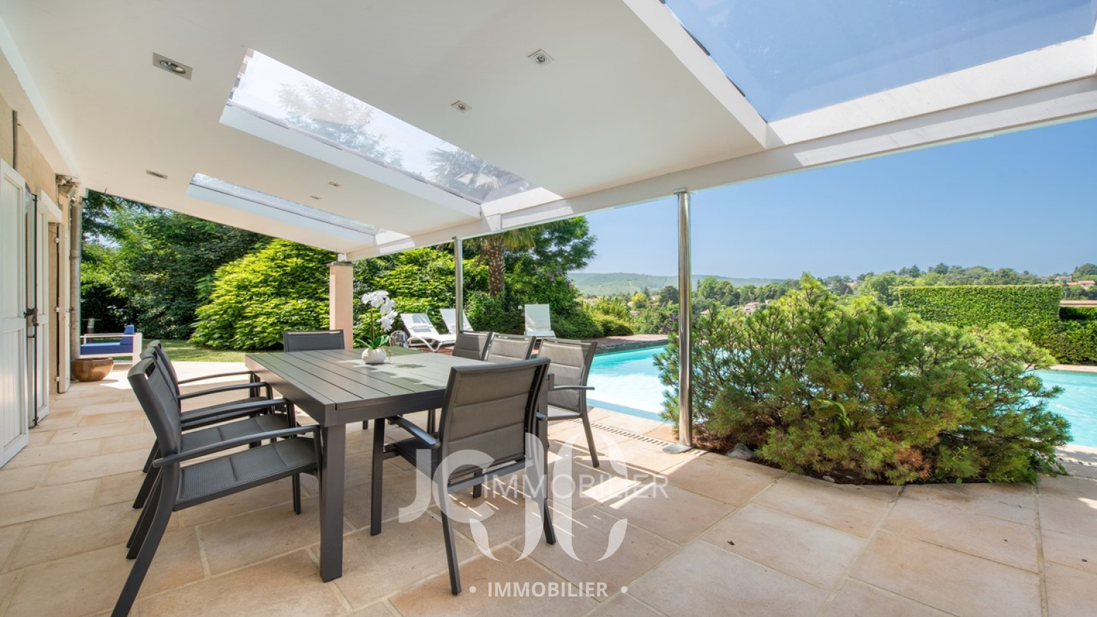Située sur un site avec vue panoramique, cette maison familiale saura vous séduire par ses volumes, sa luminosité et son cadre. La partie jour est composée d'une très belle pièce de vie avec cheminée et accès à une terrasse protégée permettant de profiter de l'espace piscine à la vue exceptionnelle sur les Monts d'Or. La cuisine de 19m² + cellier buanderie est entièrement équipée et aménagée avec elle aussi un accès direct à l'extérieur. La partie nuit est composée de 5 chambres dont une superbe Master Suite comprenant chambre, dressing, salle de bains (douche et baignoire), wc indépendants. La partie nuit est complétée par deux salles d'eau et wc. Grand garage deux places avec accès intérieur à la maison. Que ce soit entre amis ou en famille ce bien saura vous réserver de nombreux moments de détente très agréables. A découvrir sans tarder !!!
