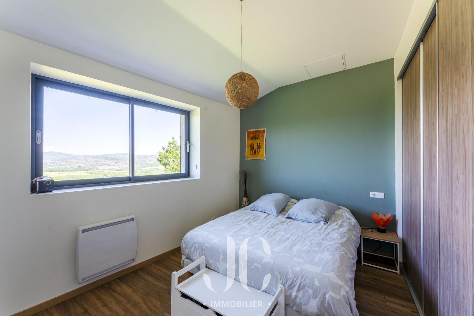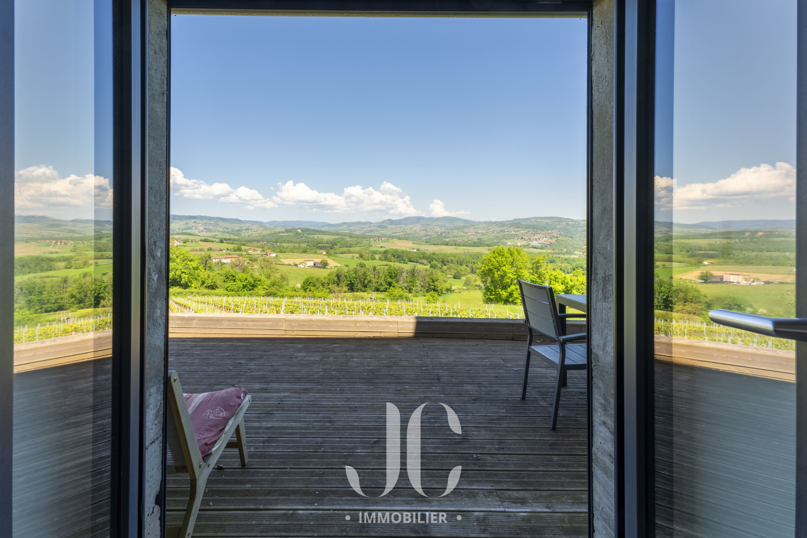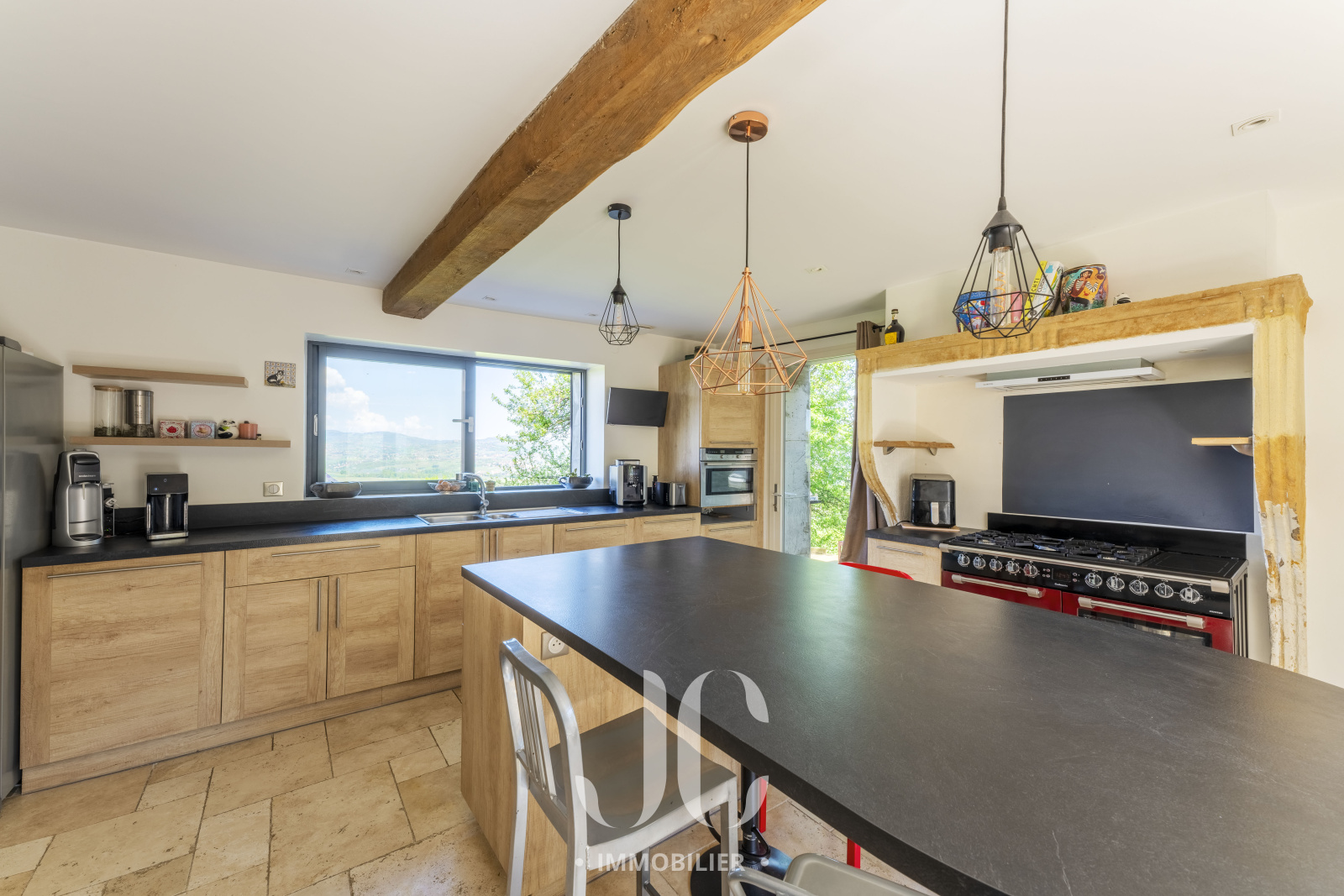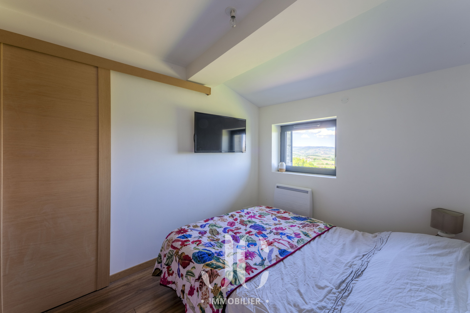 Son lumineux séjour-salle à manger de 37m², parfait pour recevoir, invite à la convivialité. La maison dispose également de 3 chambres et de 2 salles de bains, offrant un cadre de vie idéal dans un environnement privilégié, au milieu des paysages enchanteurs du Beaujolais.