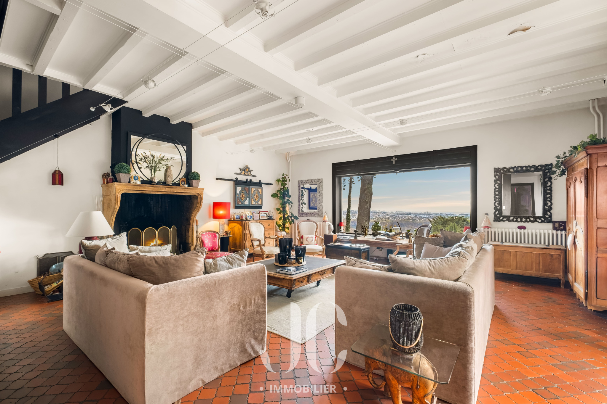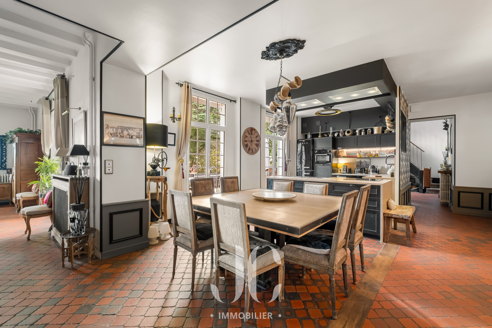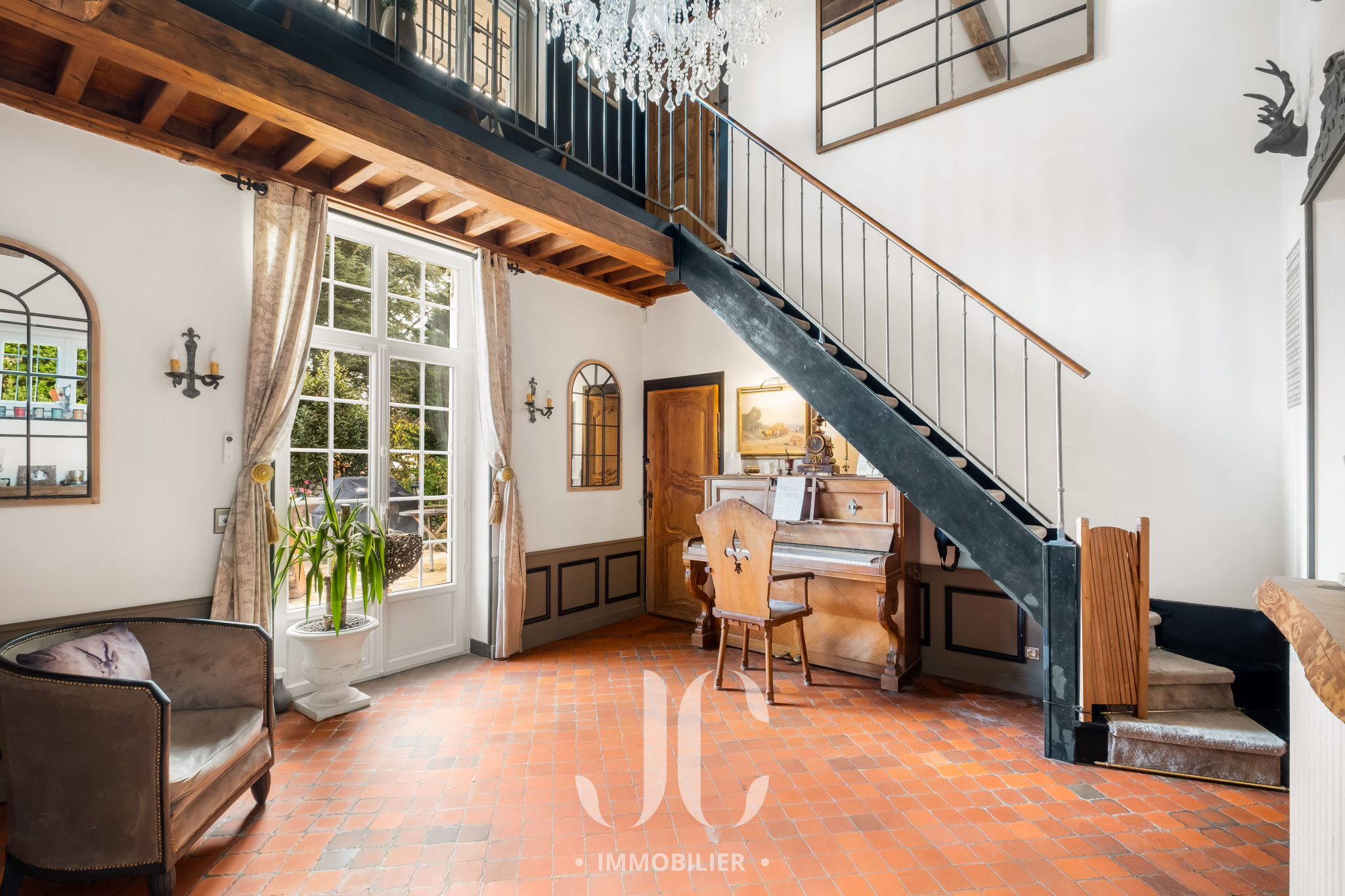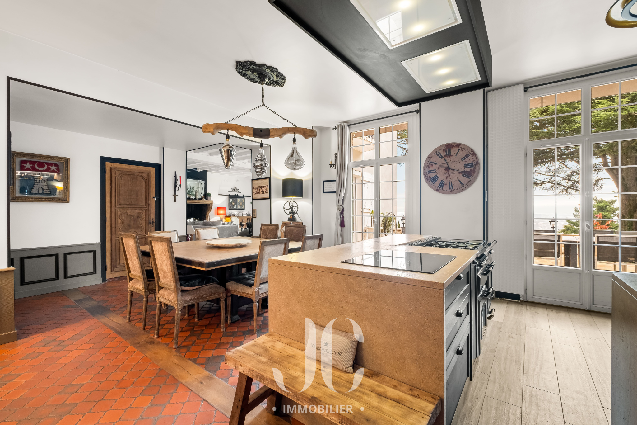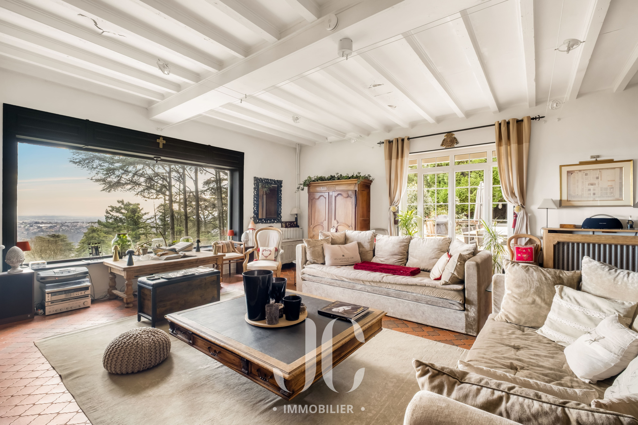 Bien plus qu'un lieu de vie c'est un art de vivre que nous vous proposons avec cette propriété. La bâtisse d'une surface totale de 420m² est comme un joyau dans son écrin de nature de 9500m² à la vue exceptionnelle. Sa localisation idéale permet de profiter d'un environnement naturel exceptionnel tout en bénéficiant d'une proximité de ce village très prisé des Monts d'Or et du centre de Lyon. Le dépaysement n'opére pas uniquement grâce à l'environnement. Dès que vous franchirez la porte vous accéderez à une entrée au tempérament envoûtant dans un style qui vous laisse envisager la sérénité et le bien être. Cela se confirmera lors de la découverte de l'espace principal de 70m² qui vous laissera sans voix grâce à une vue exceptionnelle aux airs de carte postale. Le salon de réception vous permettra de profiter de moments inoubliables en profitant d'une magnifique cheminée d'époque. La cuisine n'est pas en reste avec un équipement et une ambiance laissant augurer des repas savoureux en profitant également d'un espace dinatoire très confortable. Cet ensemble bénéficiant de nombreux accès à une première terrasse, tel un promontoire dominant l'ensemble de la propriété et l'espace piscine. Toujours en rez de chaussée, vous découvirez une très spacieuse Master Suite de 50m². Egalement un très vaste bureau complète ce niveau. Au niveau supérieur, un couloir transpirant de charme distribue la partie nuit qui est composée de 5 chambres très spacieuses dont deux Suites avec accès à une terrasse donnant ainsi un cachet unique. Pour les adeptes de surprises et d'espaces renvoyant à une idée de moments inoubliables, rendez-vous au niveau inférieur, de plain pied avec la terrasse principale et la piscine, pour découvrir un espace entièrement équipé pouvant faire office de cuisine d'été et de salle de jeux avec bar pour les soirées festives. Ne manque plus que de vous proposer la découverte d'une magnifique cave à vins qui vous tend les bras pour y entreposer vos meilleurs crus. Une dernière surprise vous attend, mais visitons pour en savoir plus !