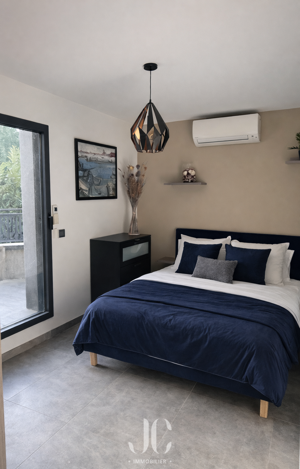 À l’étage, l’espace nuit accueille quatre chambres, dont une superbe suite parentale d’environ 30 m², disposant de sa salle de bain privative et d’une terrasse avec vue dégagée. Les trois autres chambres bénéficient chacune d’un accès à une salle d’eau indépendante, garantissant confort et fonctionnalité pour toute la famille.