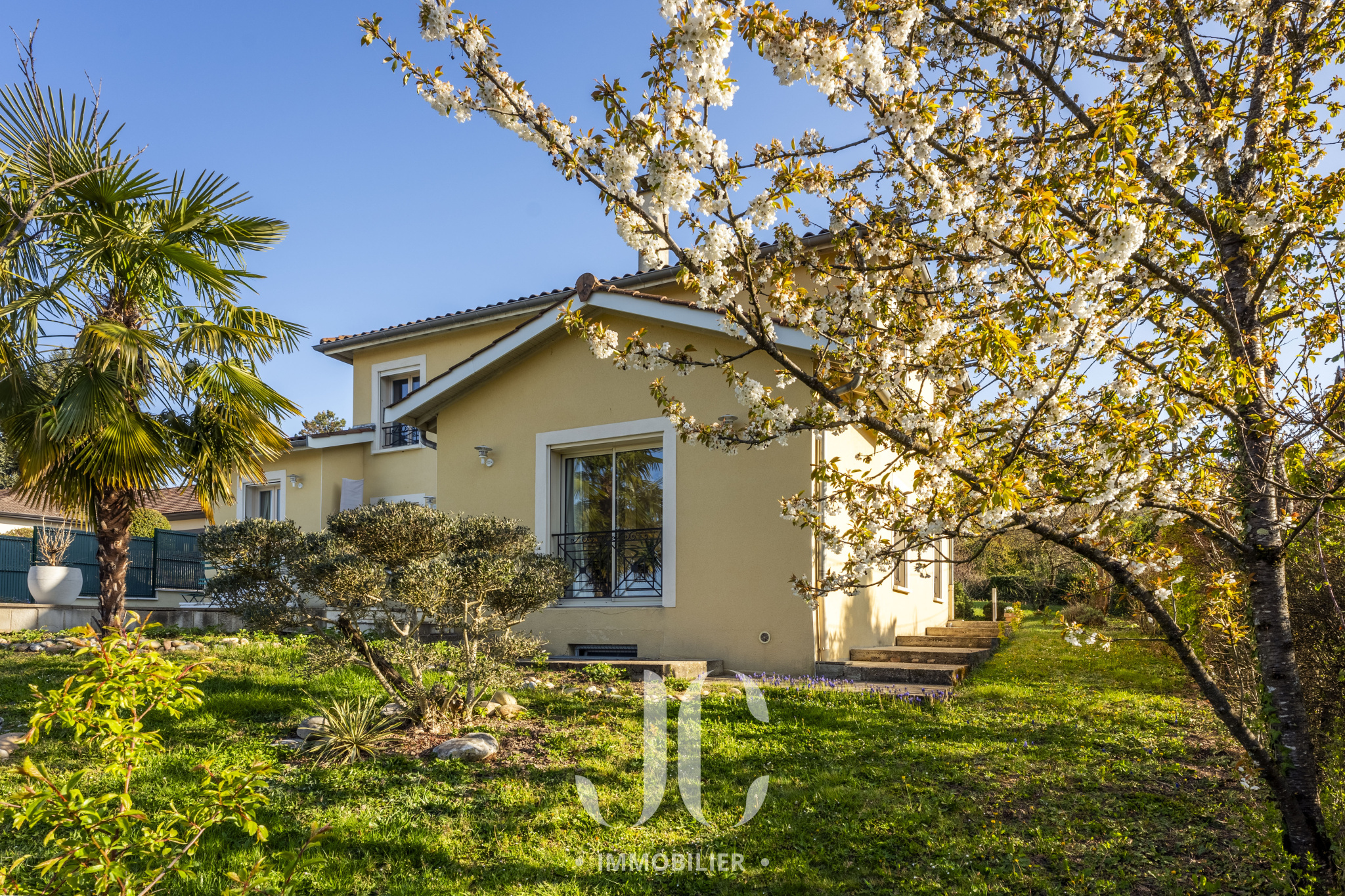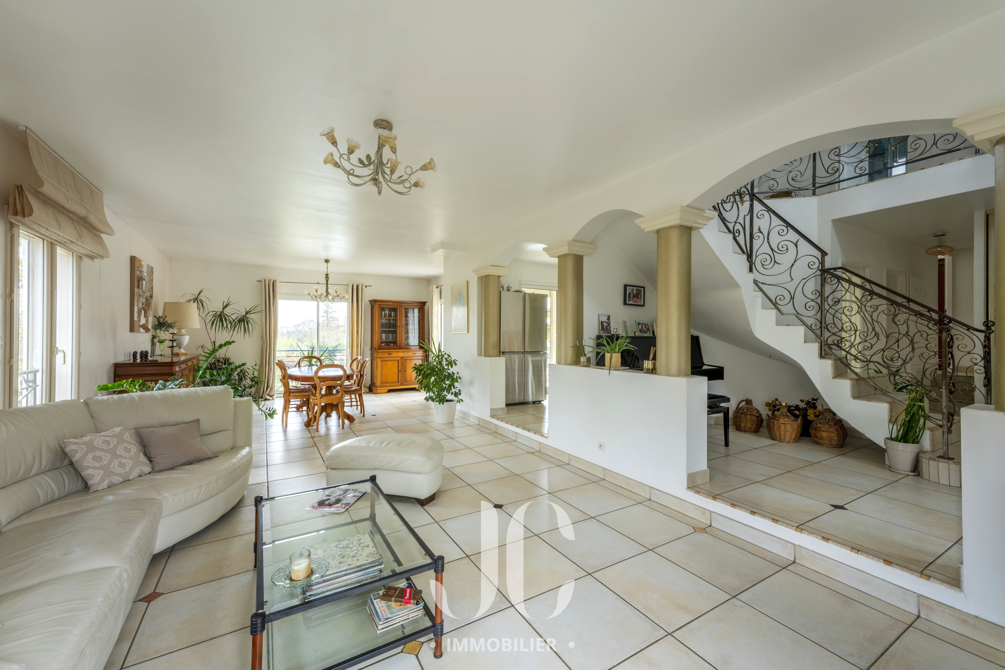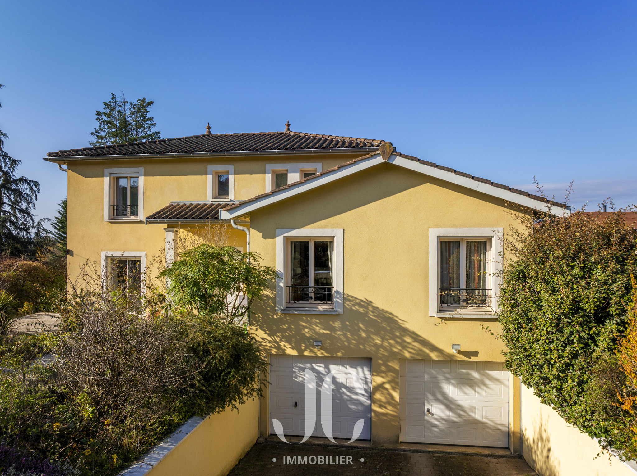 Nichée dans un environnement résidentiel prisé, à quelques minutes de Lyon, cette élégante villa familiale d’environ 195 m² séduit par ses volumes, sa luminosité et la qualité de son implantation sur un terrain paysager de 1 536 m².