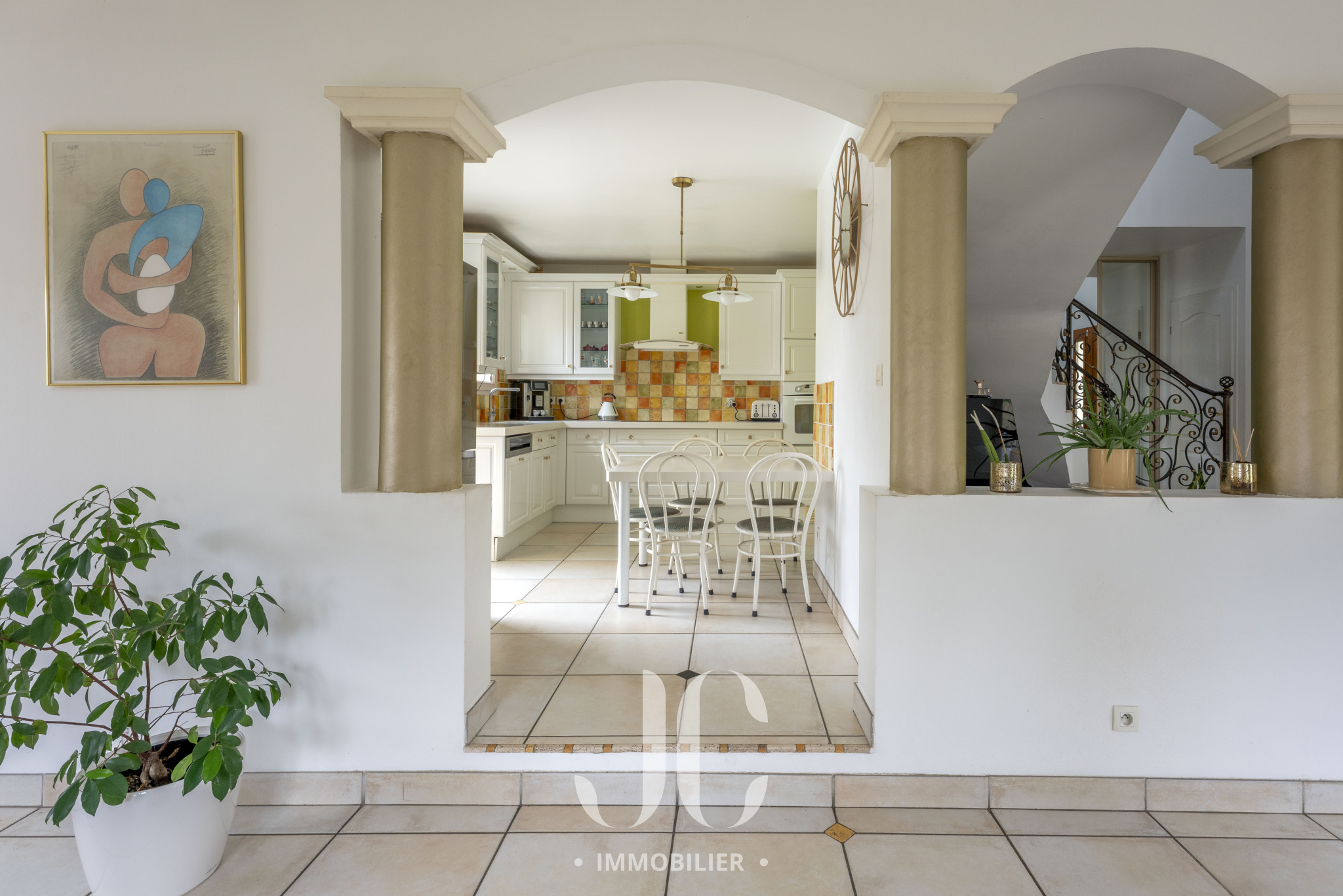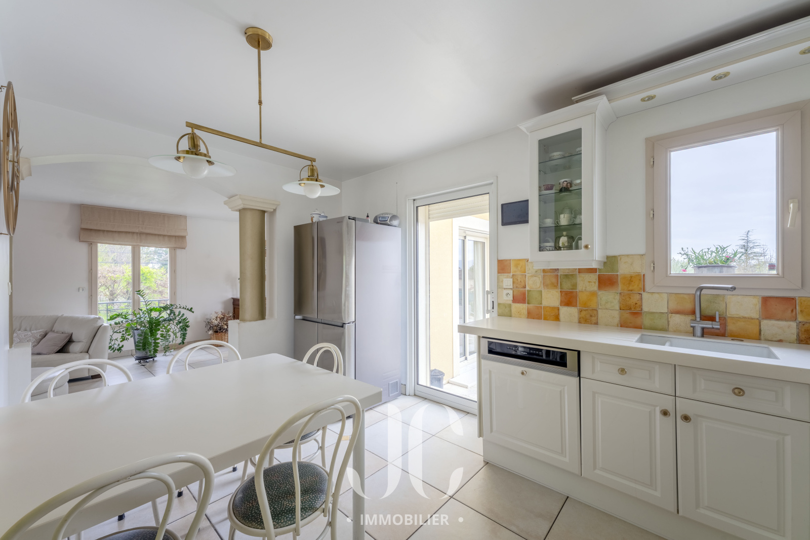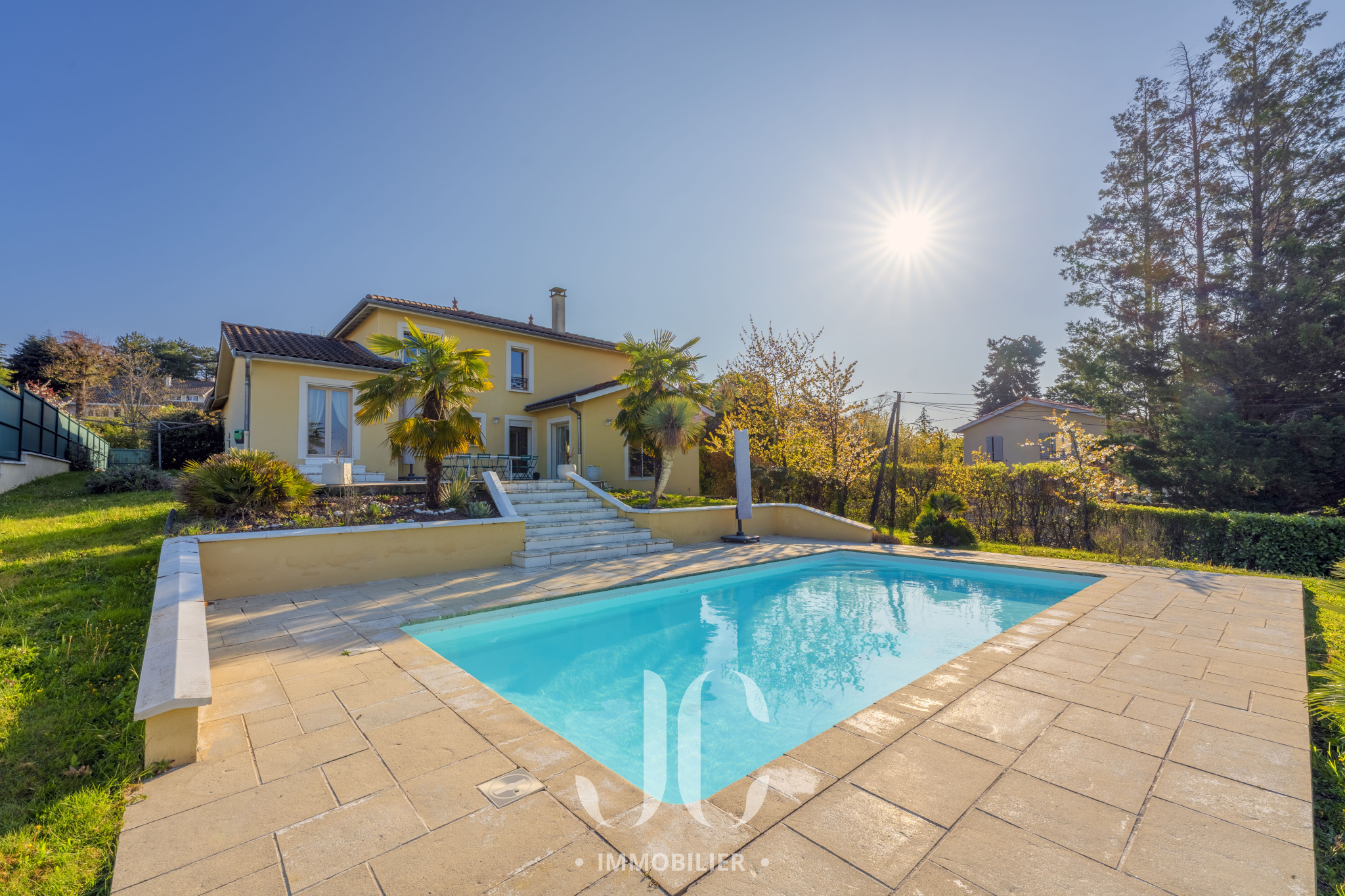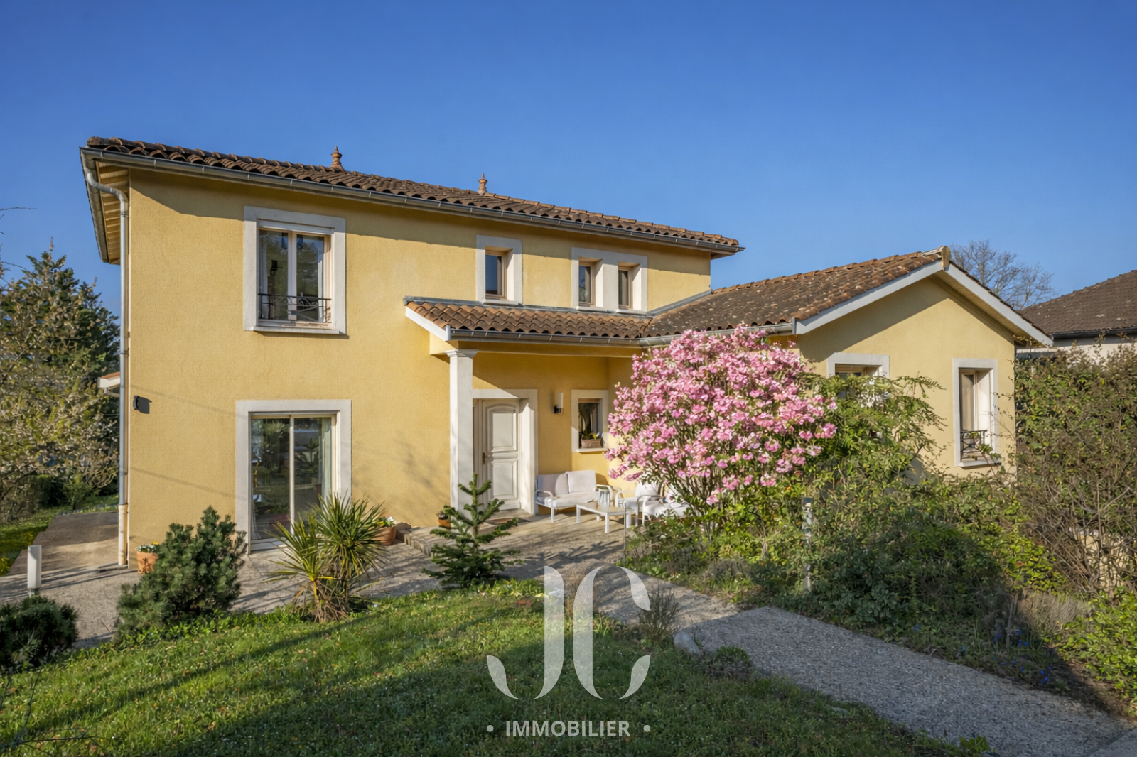 Nichée dans un environnement résidentiel prisé, à quelques minutes de Lyon, cette élégante villa familiale d’environ 195 m² séduit par ses volumes, sa luminosité et la qualité de son implantation sur un terrain paysager de 1 536 m².