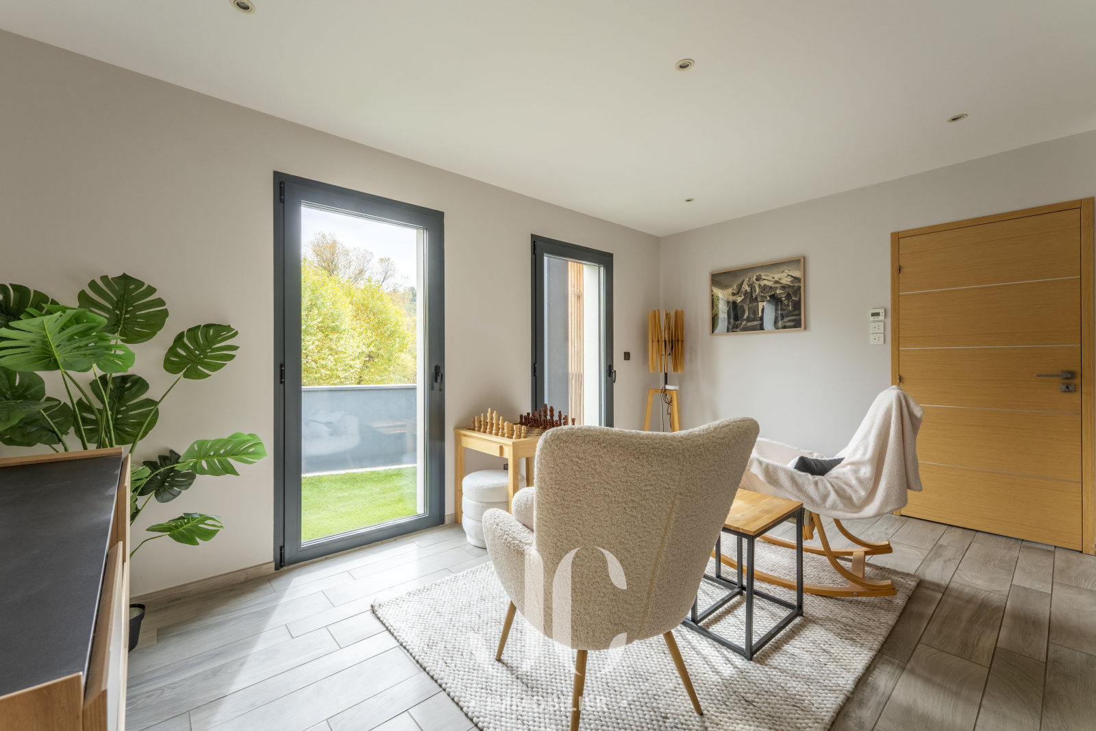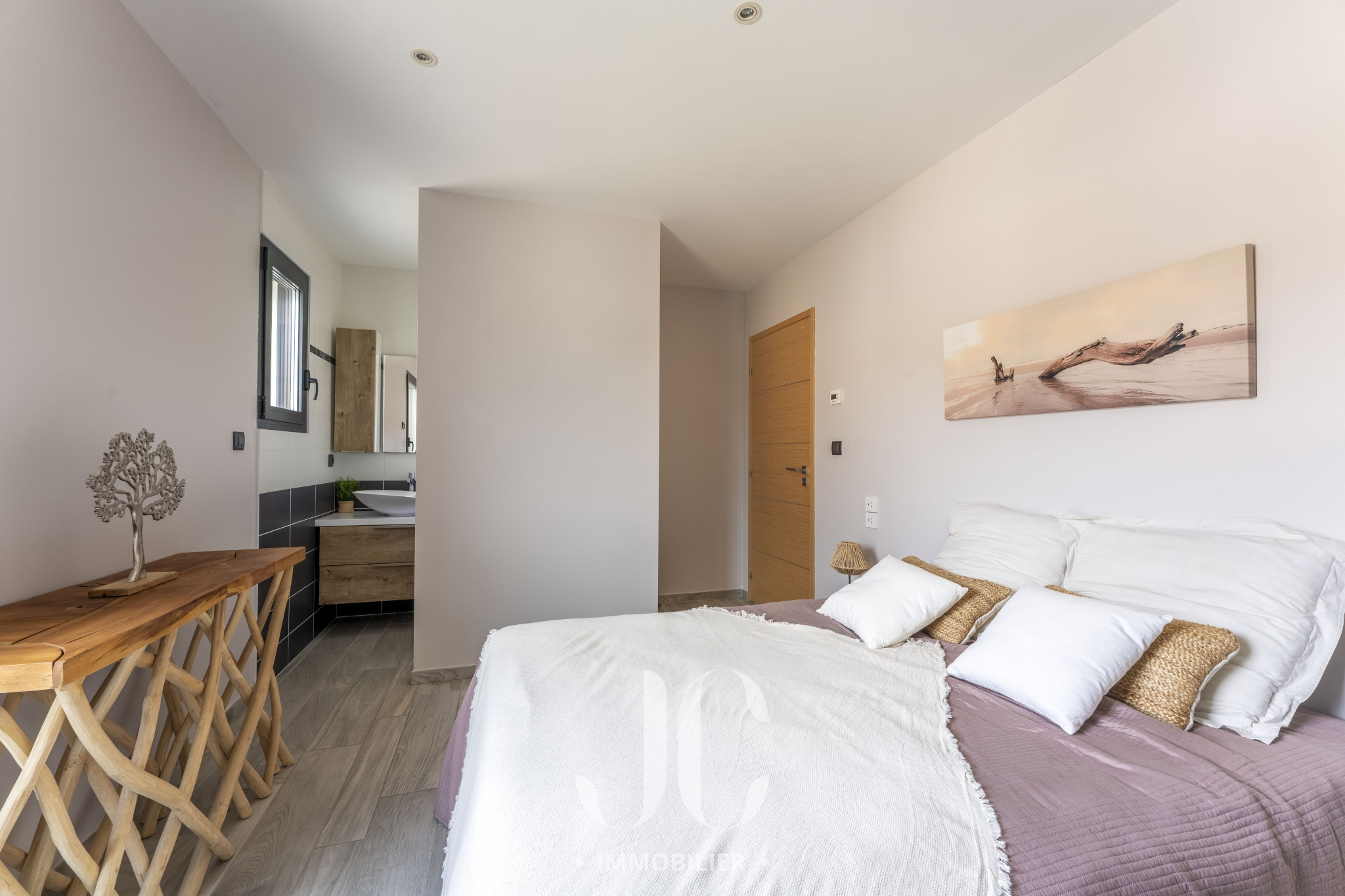 À l'étage, 4 suites parentales chacune avec sa salle d'eau privative sont agencées autour d'un agréable espace détente donnant accès à une terrasse elle aussi pensée pour ne faire qu'un avec l'environnement, vous apprécierez un moment de lecture face au Rhône ou encore un moment partagé.