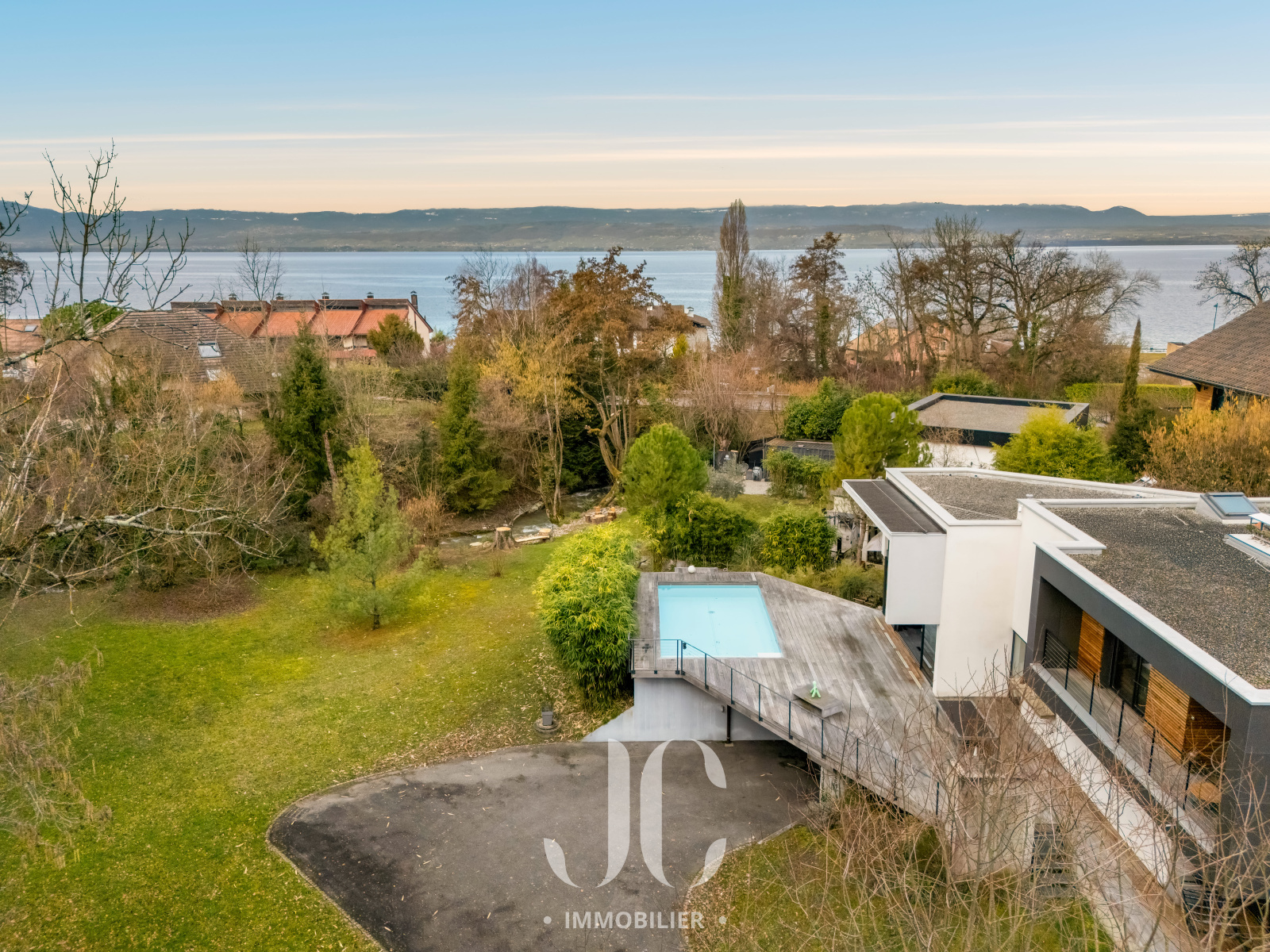 Dans un véritable écrin de verdure, découvrez cette magnifique maison contemporaine parfaitement intégrée à son environnement naturel. Ici, le murmure d’un ruisseau et la proximité du lac composent un cadre de vie rare et apaisant, propice au bien-être au quotidien.